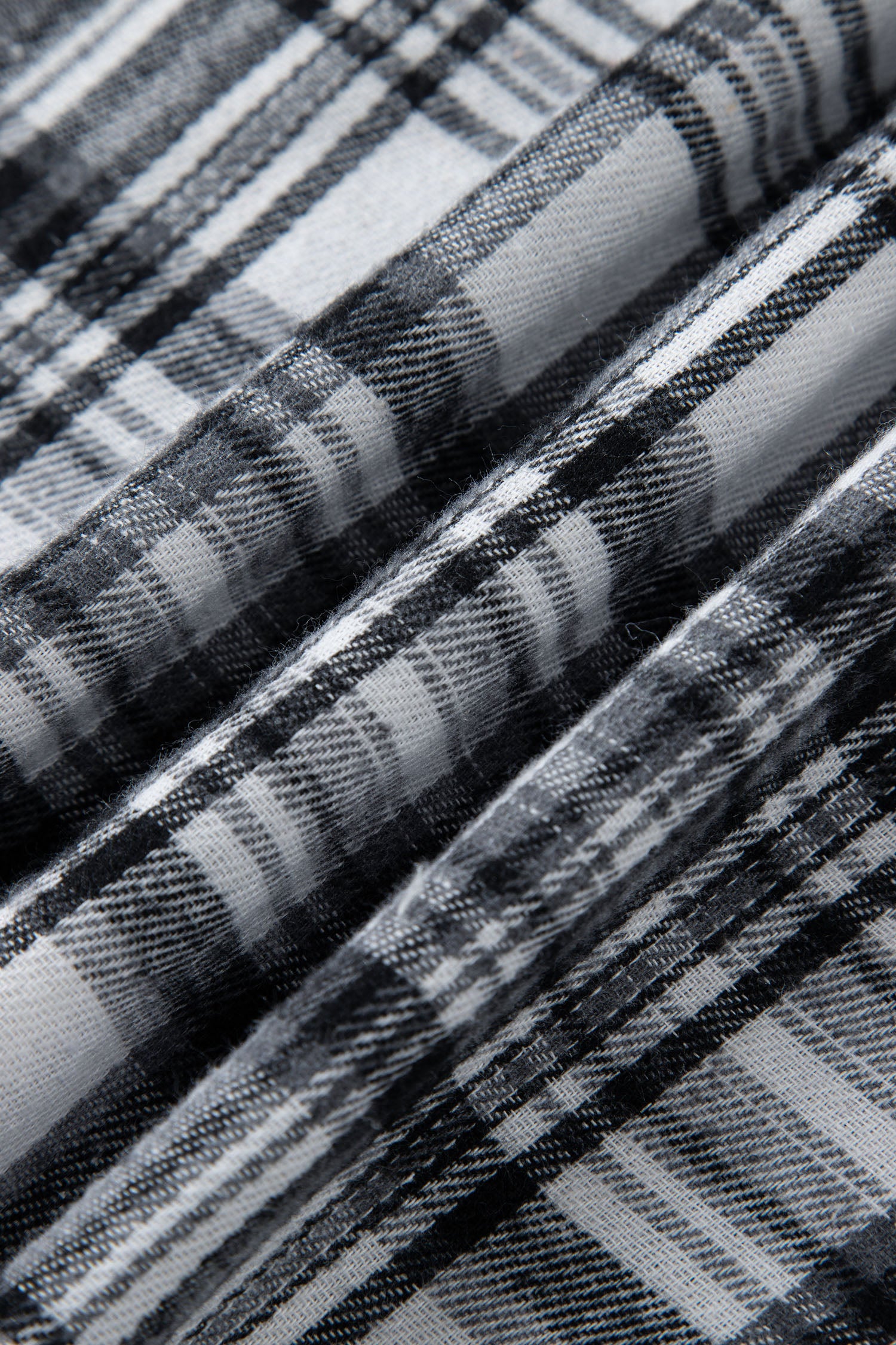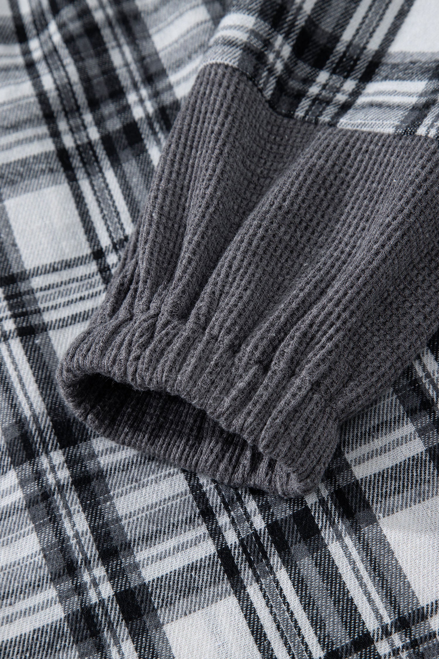 Plaid Quarter-Button Patchwork Long Sleeve Hooded Blouse