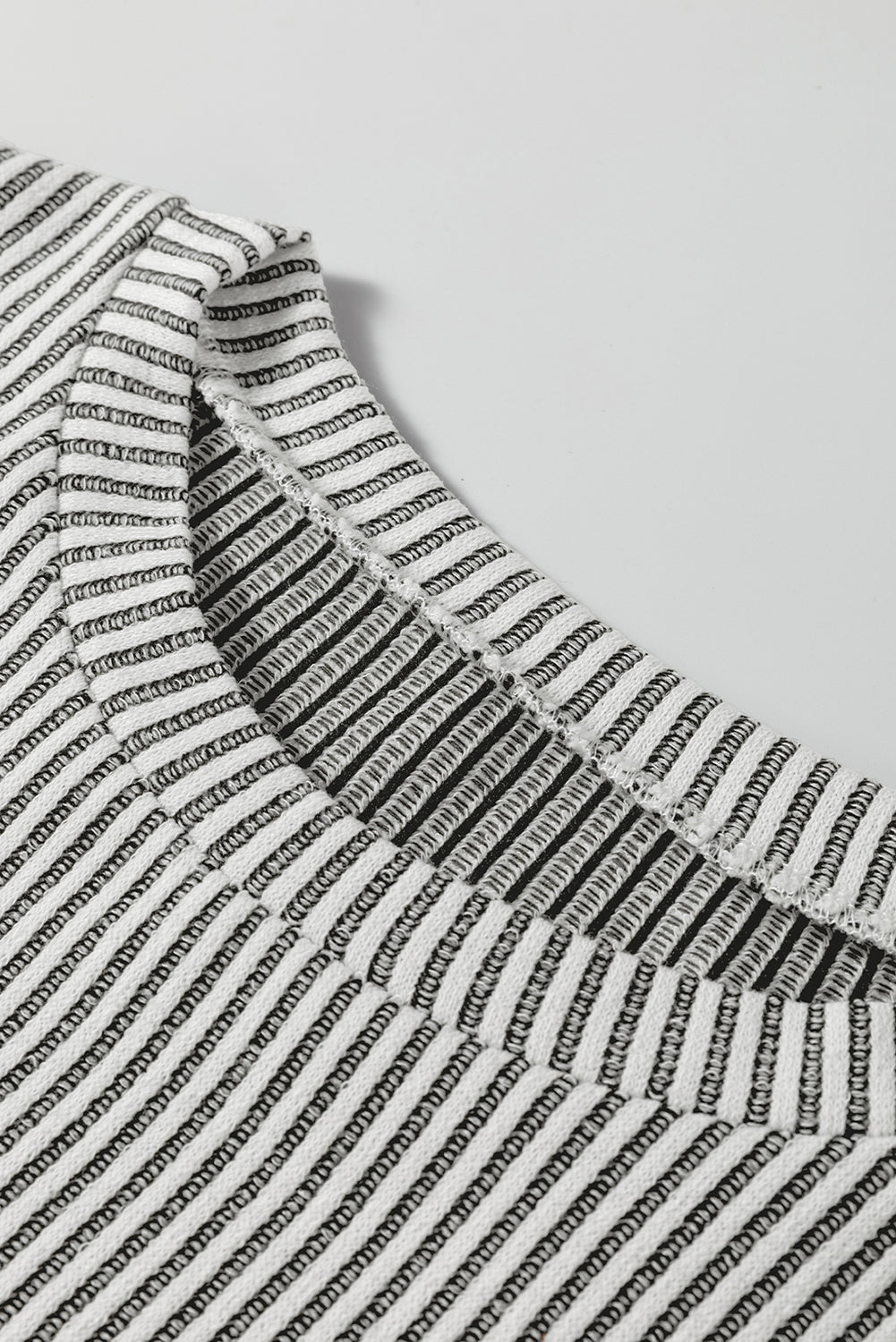 Ribbed Knit Crewneck Long Lantern Sleeve Top