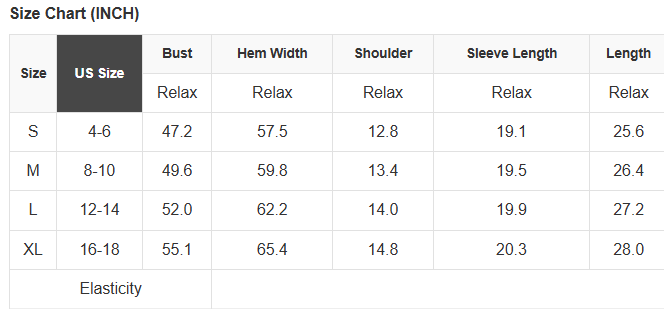 See size chart for approximate measurements.