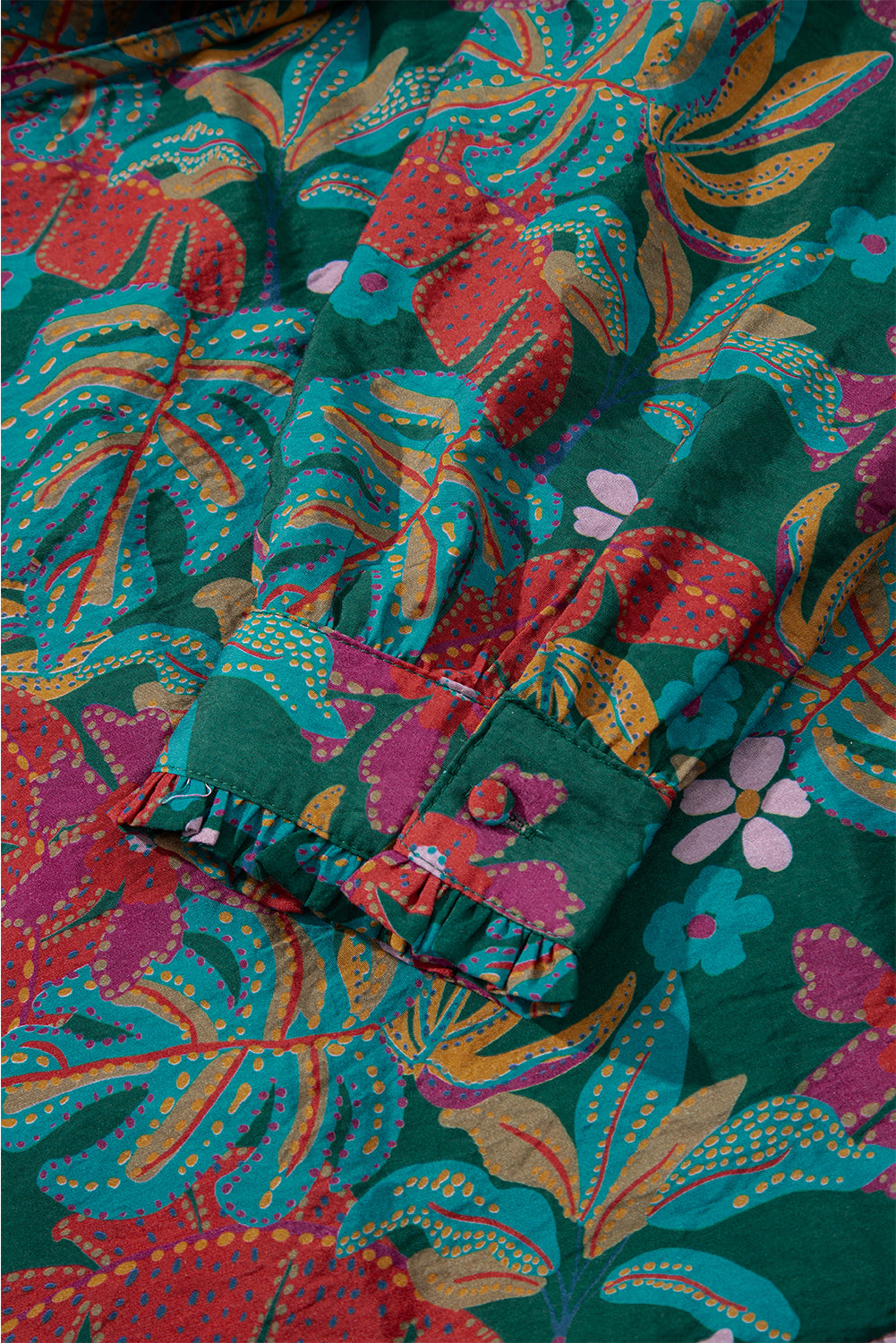 Elevate your wardrobe with this shirt dress, designed for a refined and feminine silhouette. The vibrant pattern infuses romantic charm, while the elegant frilled neckline enhances sophistication. Puff long sleeves add a contemporary edge, perfectly complemented by the ruffled shirt-style detailing. Ideal for those seeking a stylish yet graceful statement piece. Viscose/Poly