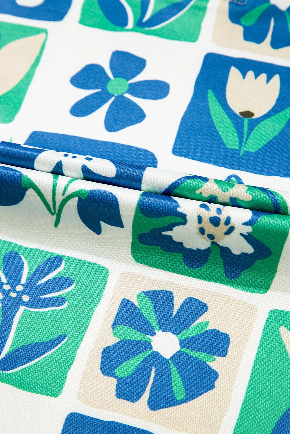 Elevate your warm-weather wardrobe with this charming blouse that effortlessly blends style and versatility. Featuring a delightful mix of floral and plaid patterns with colorblock trim detailing, it's a statement piece that works beautifully for both casual outings and dressier occasions. The classic polo collar adds a polished touch, while flutter sleeves bring a feminine, playful flair that catches the eye. Perfect for anyone seeking a blouse that's as fun as it is fashionable. Polyester/Spandex
