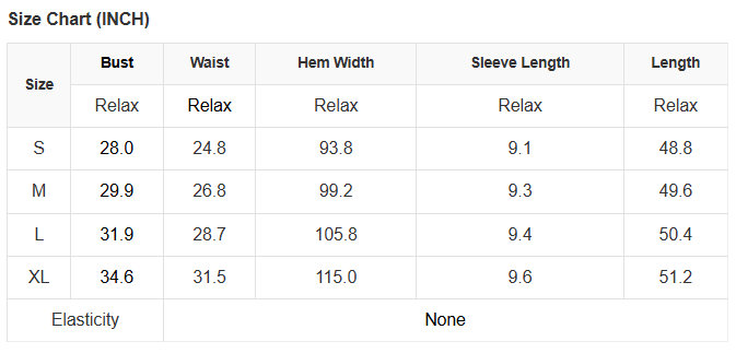 See size chart for approximate measurements