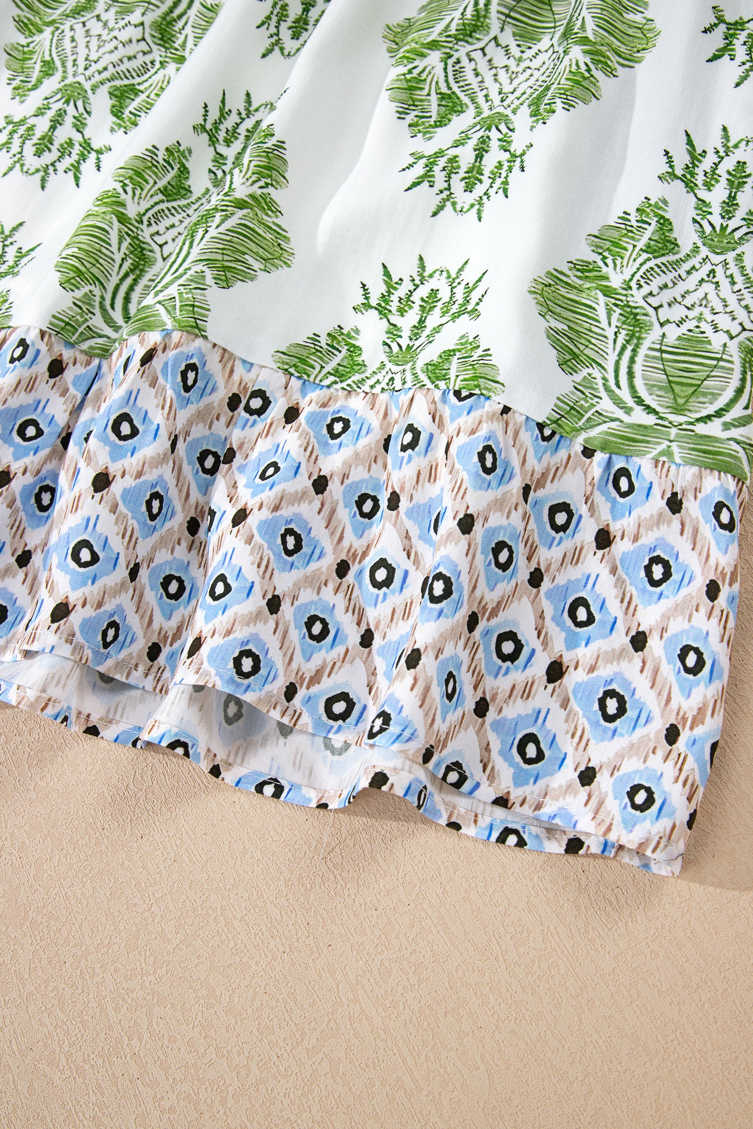 Floral Patchwork Ruffle 3/4 Sleeve Mini Dress