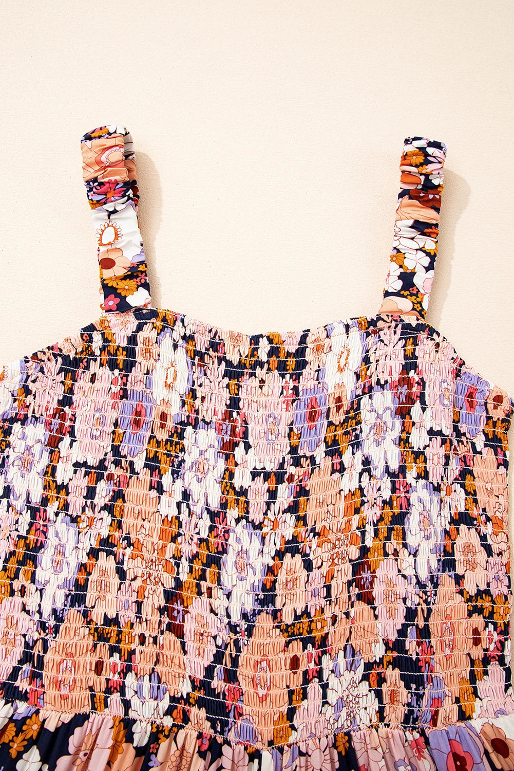 Floral Smocked High Waist Square Neck Jumpsuit