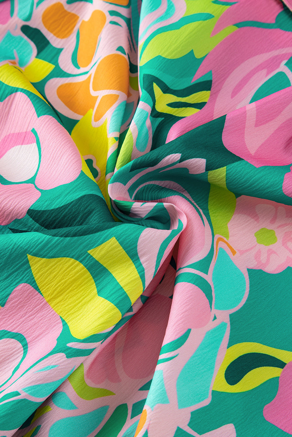 Floral Puff Sleeve Buttoned Collar Babydoll Dress