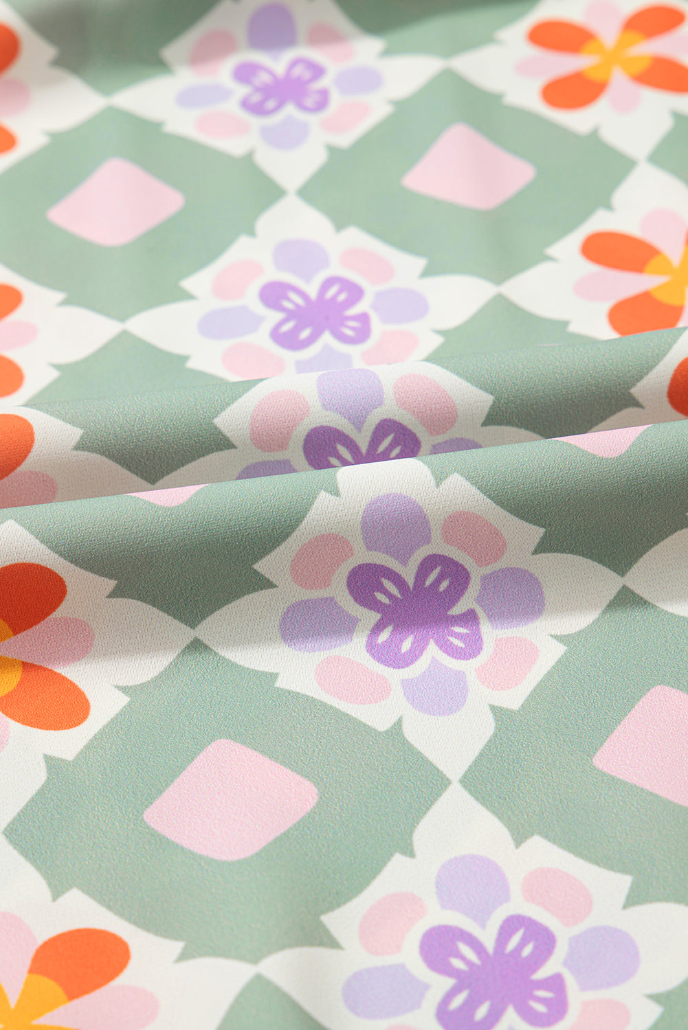 Geometric Floral V-Neck Layered Flutter Sleeve Blouse