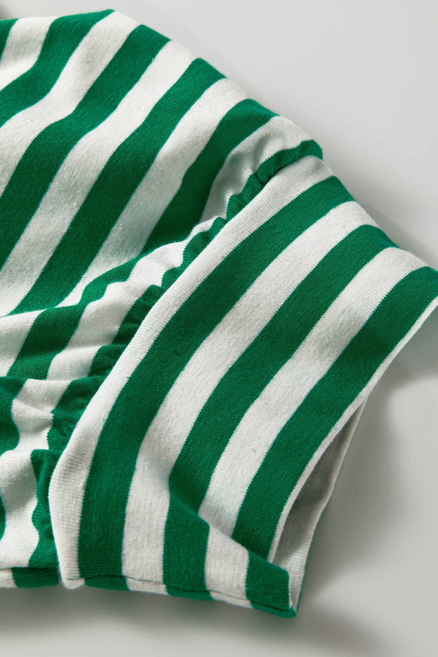 Stripe Collared V-Neck Short Puff Sleeve Top