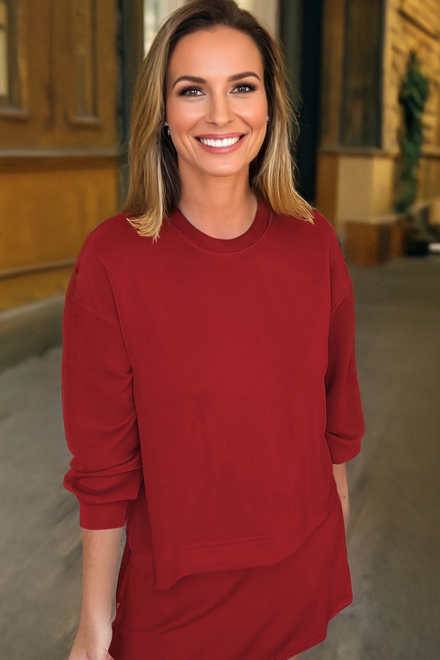 Solid Drop Shoulder Pullover and Mini Skirt Set