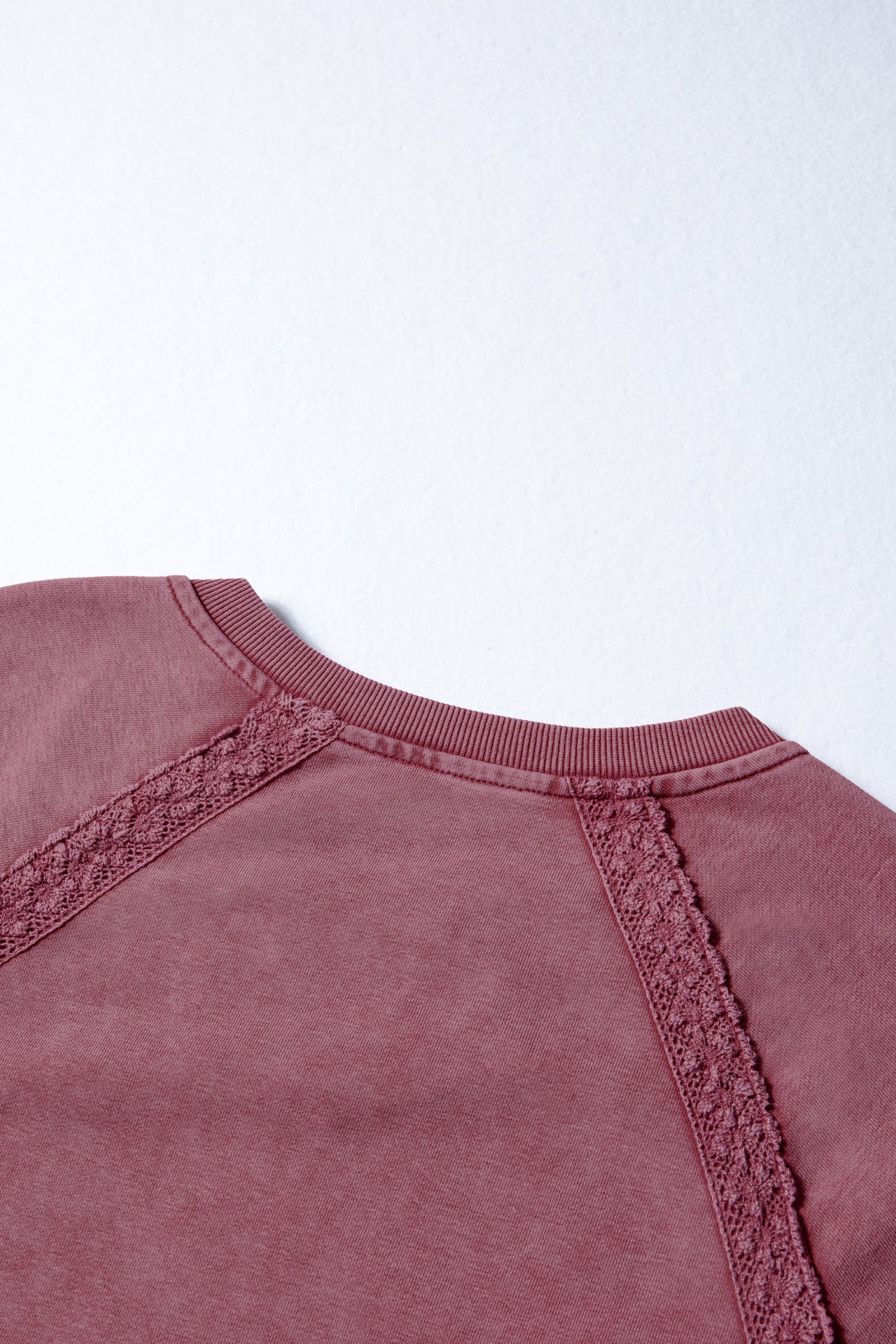 Lace Patchwork Mineral Wash Notched Neck Sweatshirt