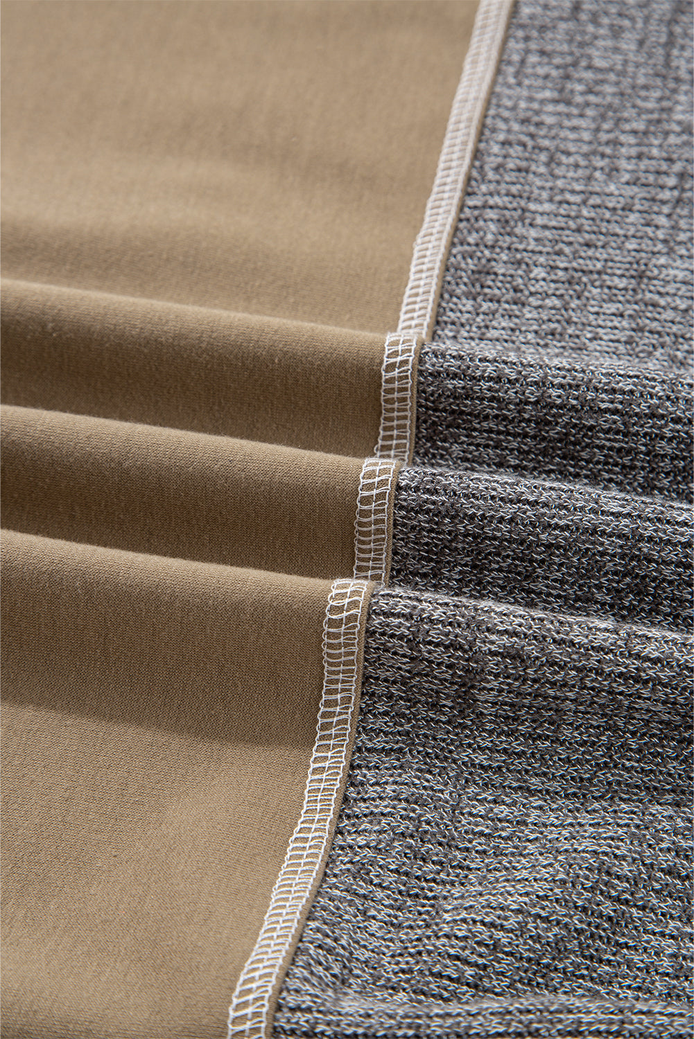 Waffle Knit Patchwork Buttoned Hooded Sweatshirt