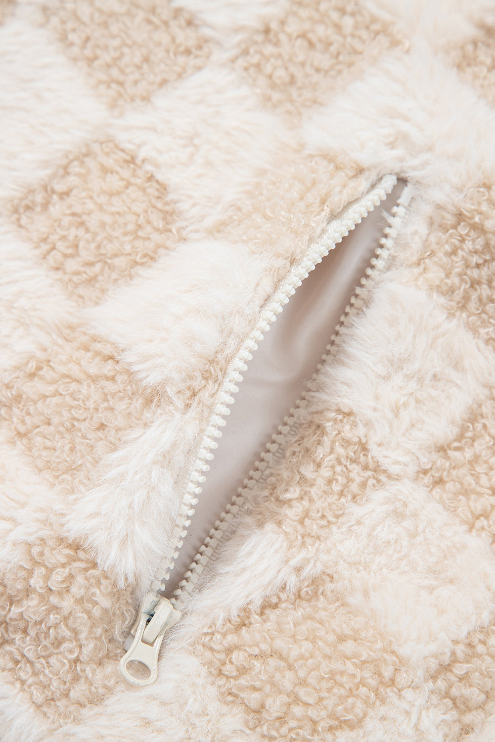 Checker Sherpa Corduroy Patchwork Zip-Up Jacket
