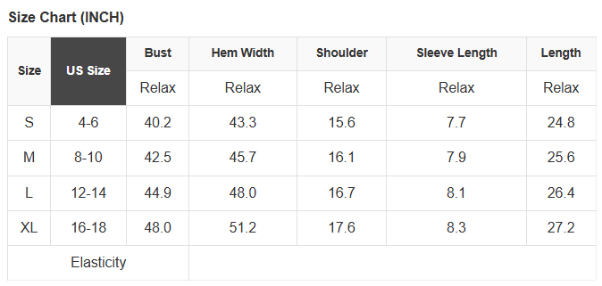 See size chart for approximate measurements.