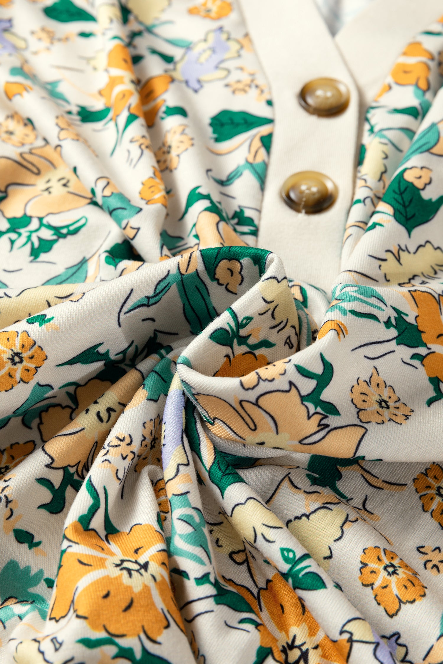 Bloom into your day with this charming floral top that brings garden-fresh style to your everyday wardrobe. The delicate floral print delivers feminine flair, while the notched V-neckline adds a touch of sophistication. Practical front button accents keep things classically chic, and long sleeves make it versatile for office meetings, casual outings, or relaxed weekends. Whether you're dressing up or keeping it low-key, this effortless beauty works hard to keep you looking polished and put-together. Polyester/Spandex