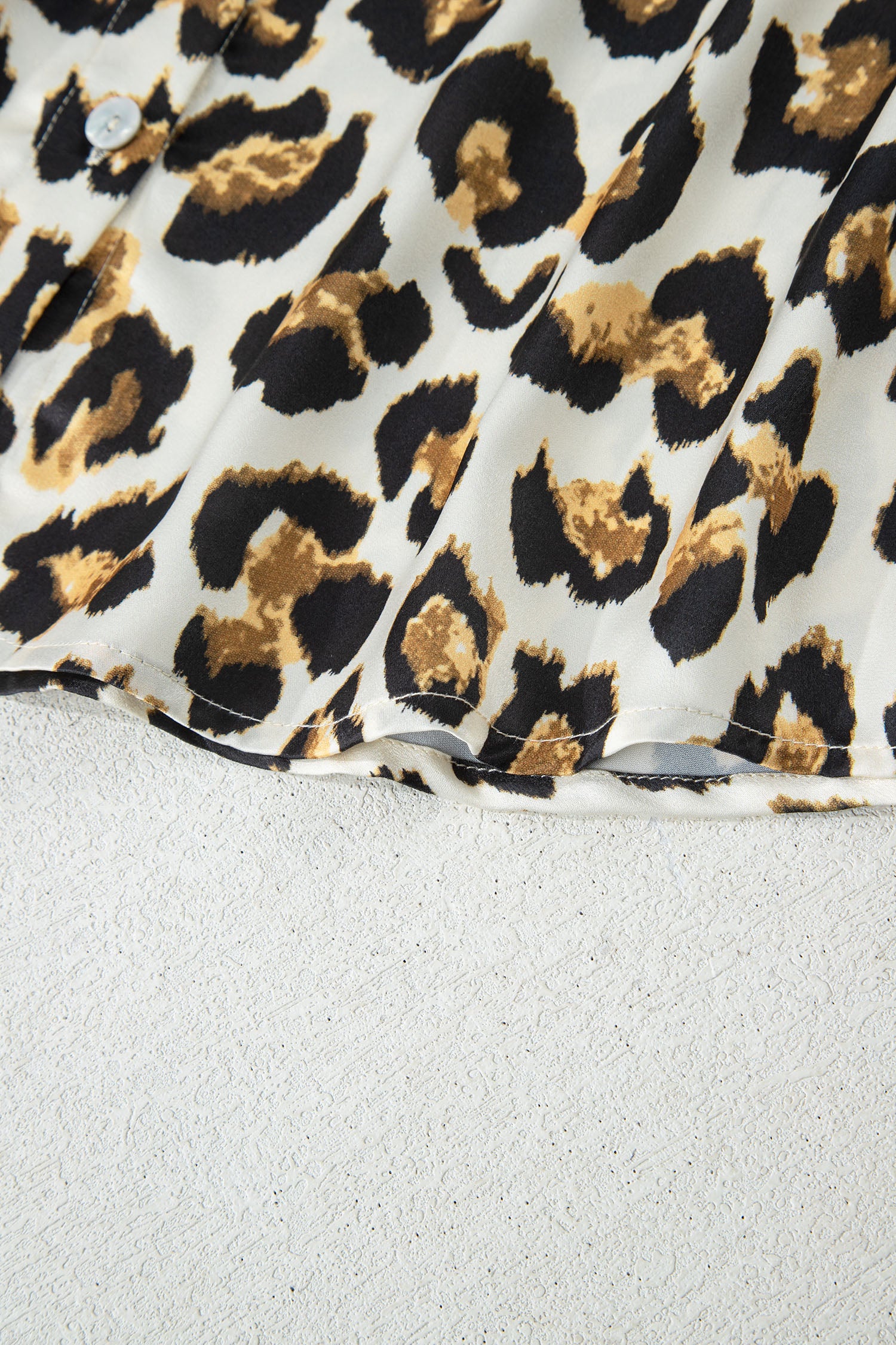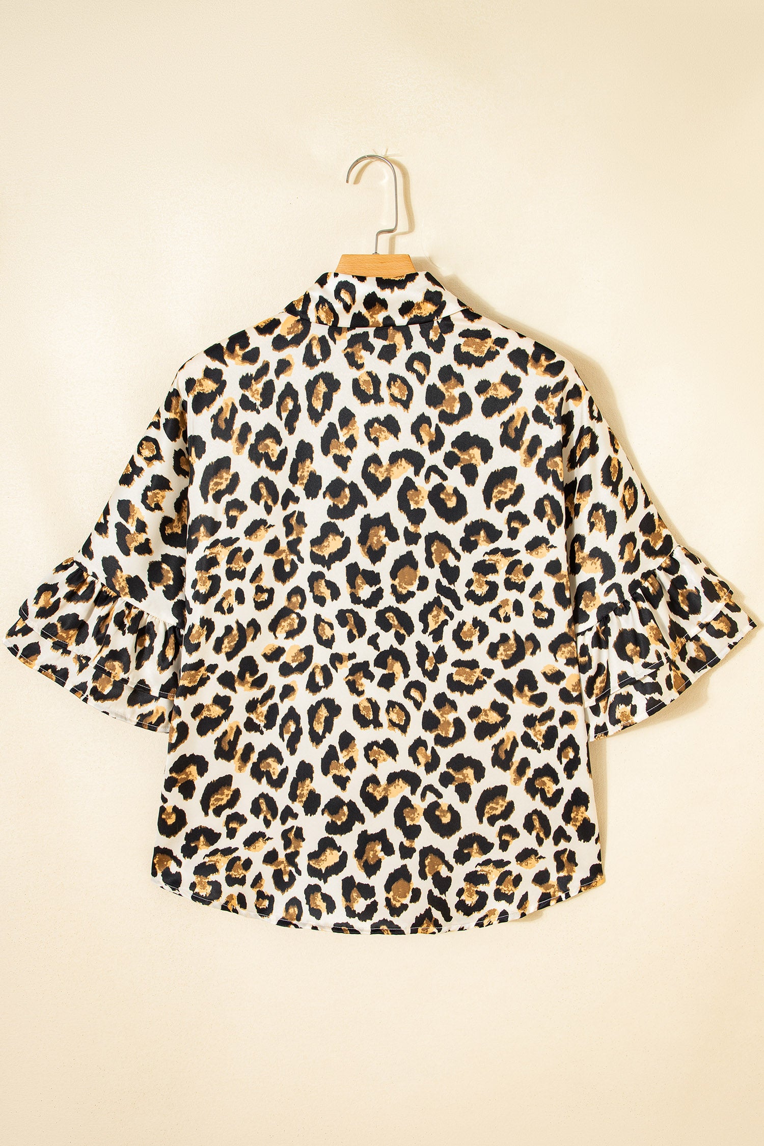 Leopard Ruffle Trim 3/4 Sleeve Buttoned Shirt