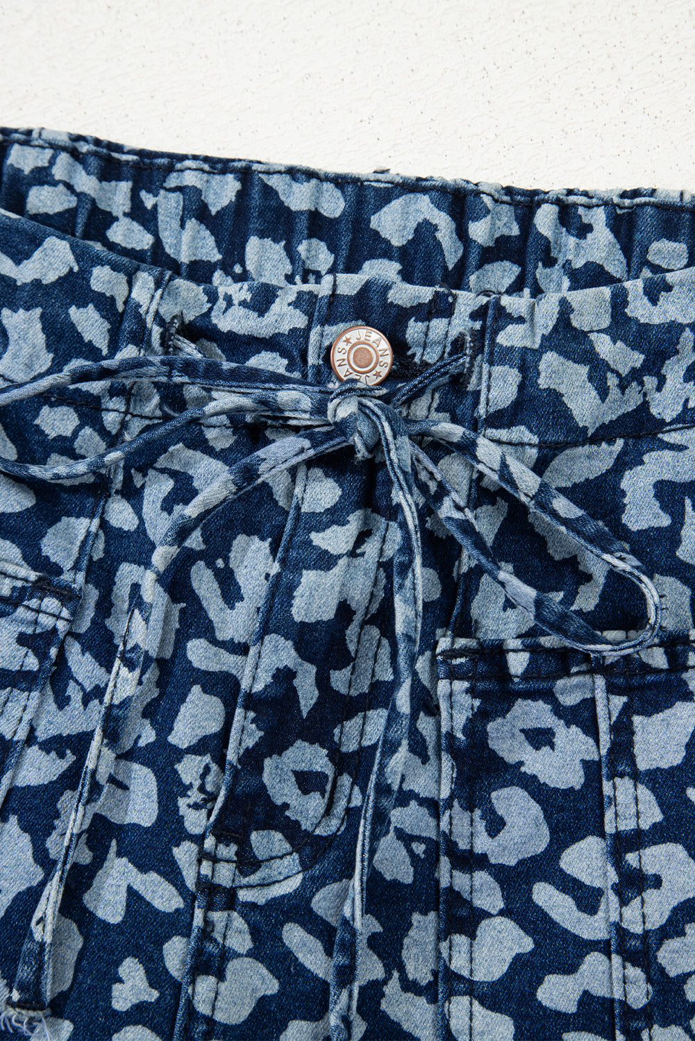 Leopard Drawstring Elastic Waist Pocketed Jeans