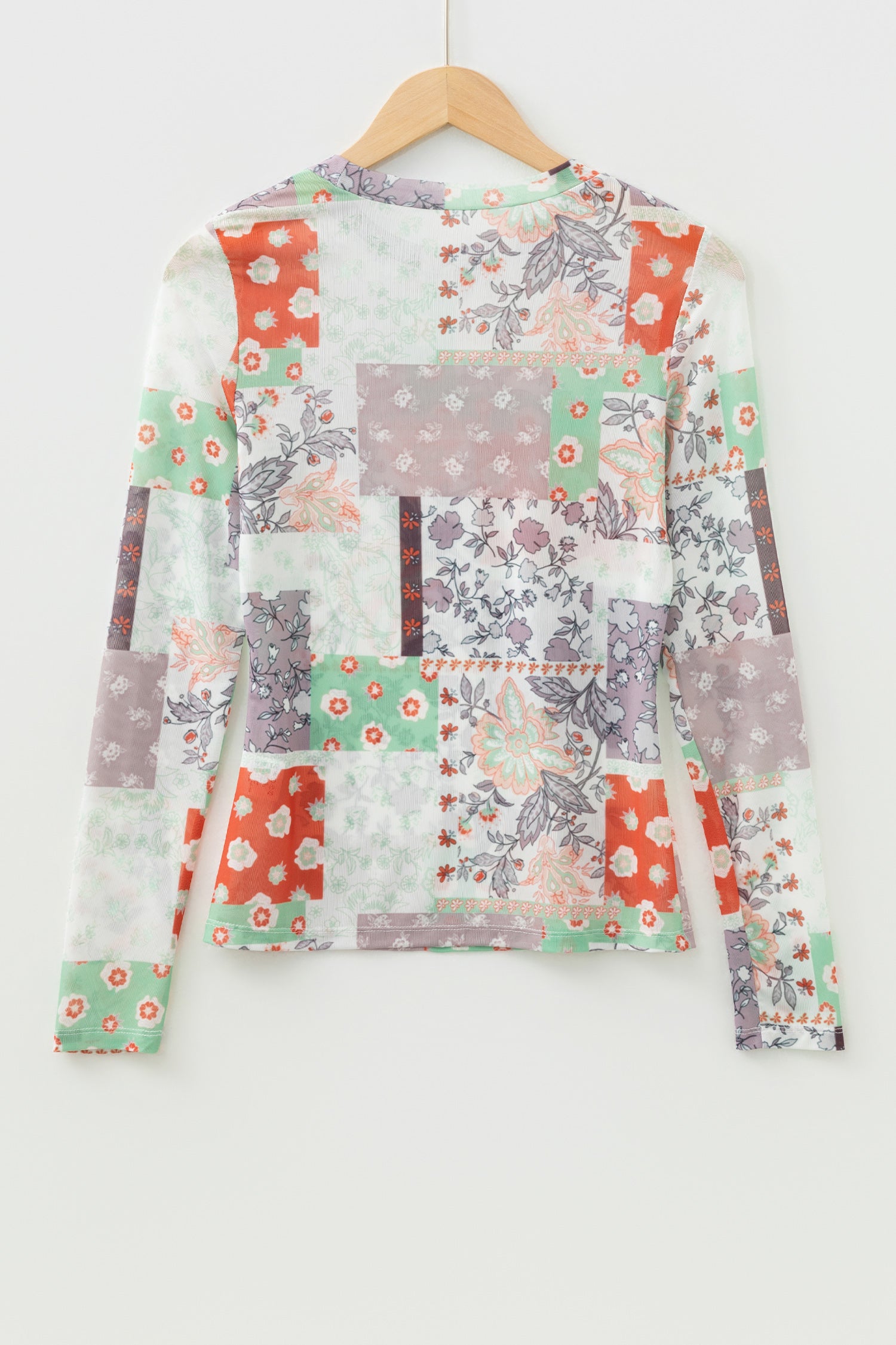 Floral Patchwork Mesh Mock Neck Long Sleeve Top