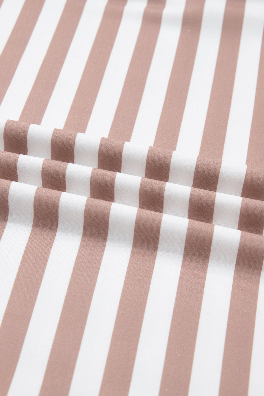 Snag this khaki striped plus-size set that's all about relaxed comfort with a style edge. The coordinated pullover and shorts feature a charming striped pattern and breathable knit fabric that feels amazing. Drop shoulders give you that effortlessly cool vibe while contrast detailing adds visual interest without trying too hard. Perfect for lounging, running around, or just living your best laid-back life. Polyester/Spandex