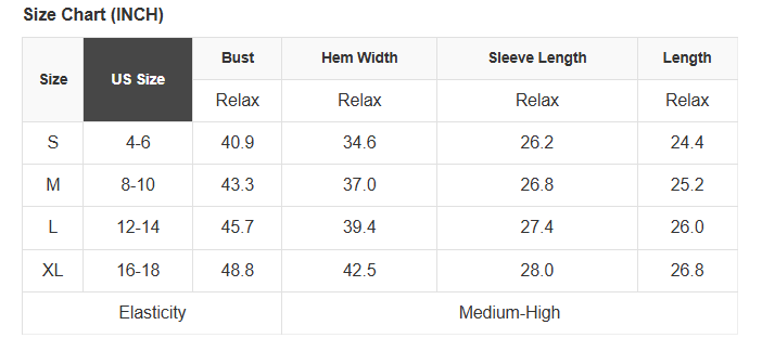 See size chart for approximate measurements.