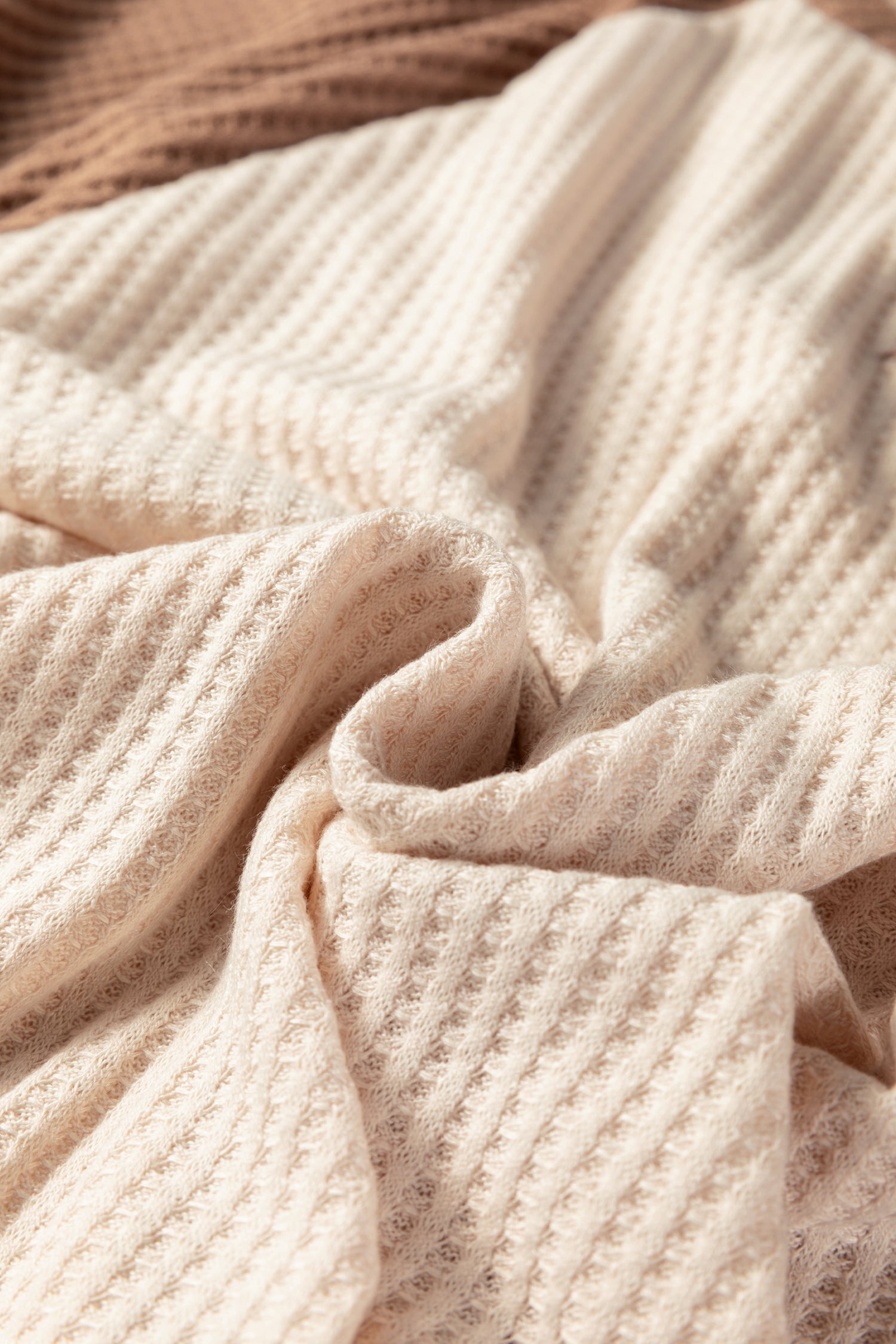 Bring some fun to your wardrobe with this top. The waffle knit texture adds cozy charm, while the bold color blocks keep things playful and trendy. The sleeves give a relaxed, sporty feel that's perfect for layering on chilly days. Whether you're out and about or lounging in style, this top makes everyday wear way more exciting. Polyester/Viscose/Spandex