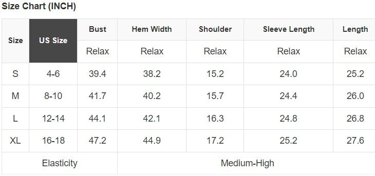 See size chart for approximate measurements.