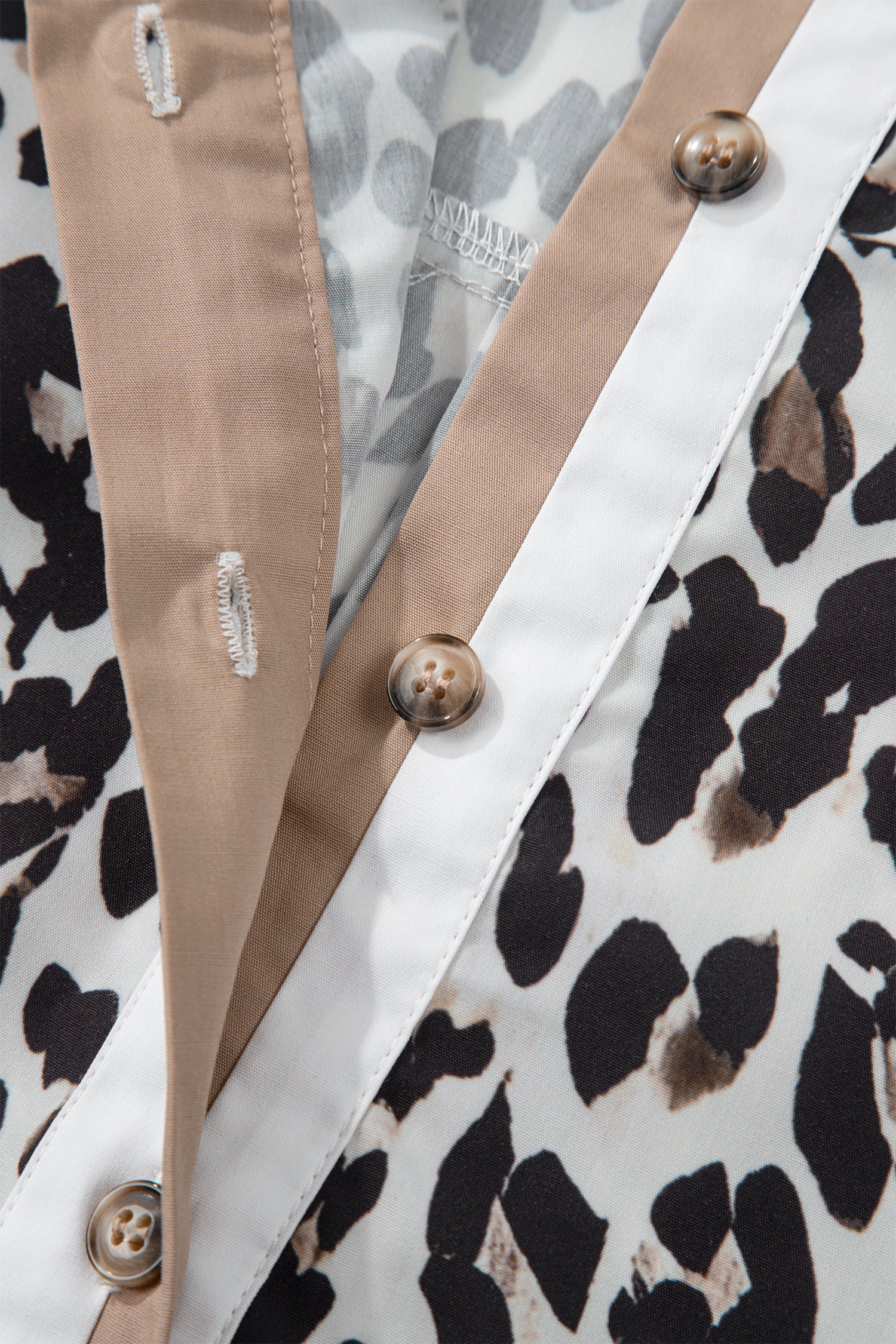 Plus Size Leopard Contrast Trim Half Button Top