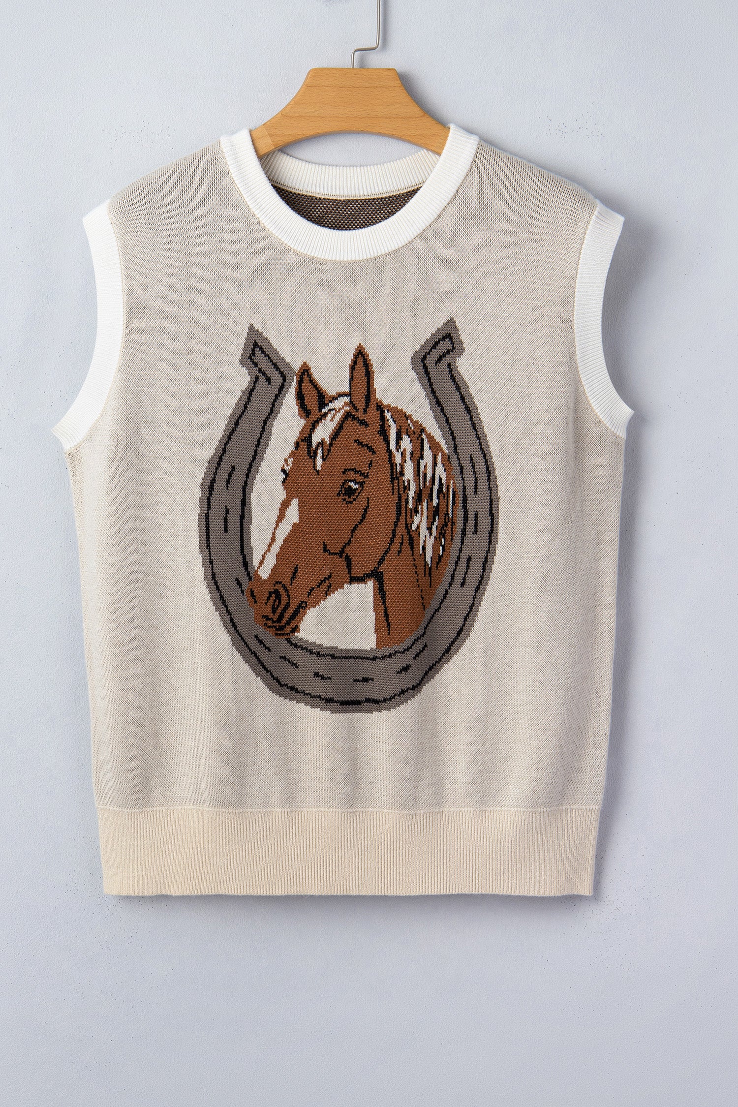 Western Horseshoe Colorblock Trim Sleeveless Sweater