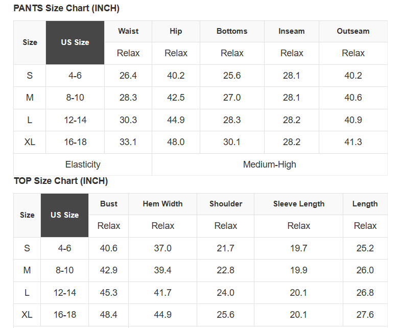 See size chart for approximate measurements.