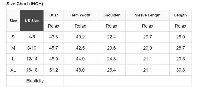 See size chart for approximate measurements.
