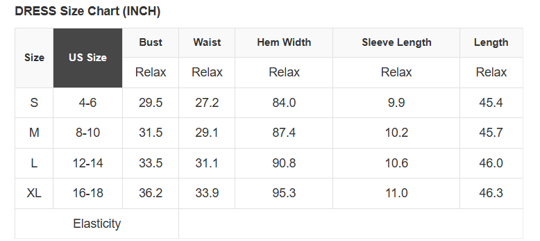 See size chart for approximate measurements.