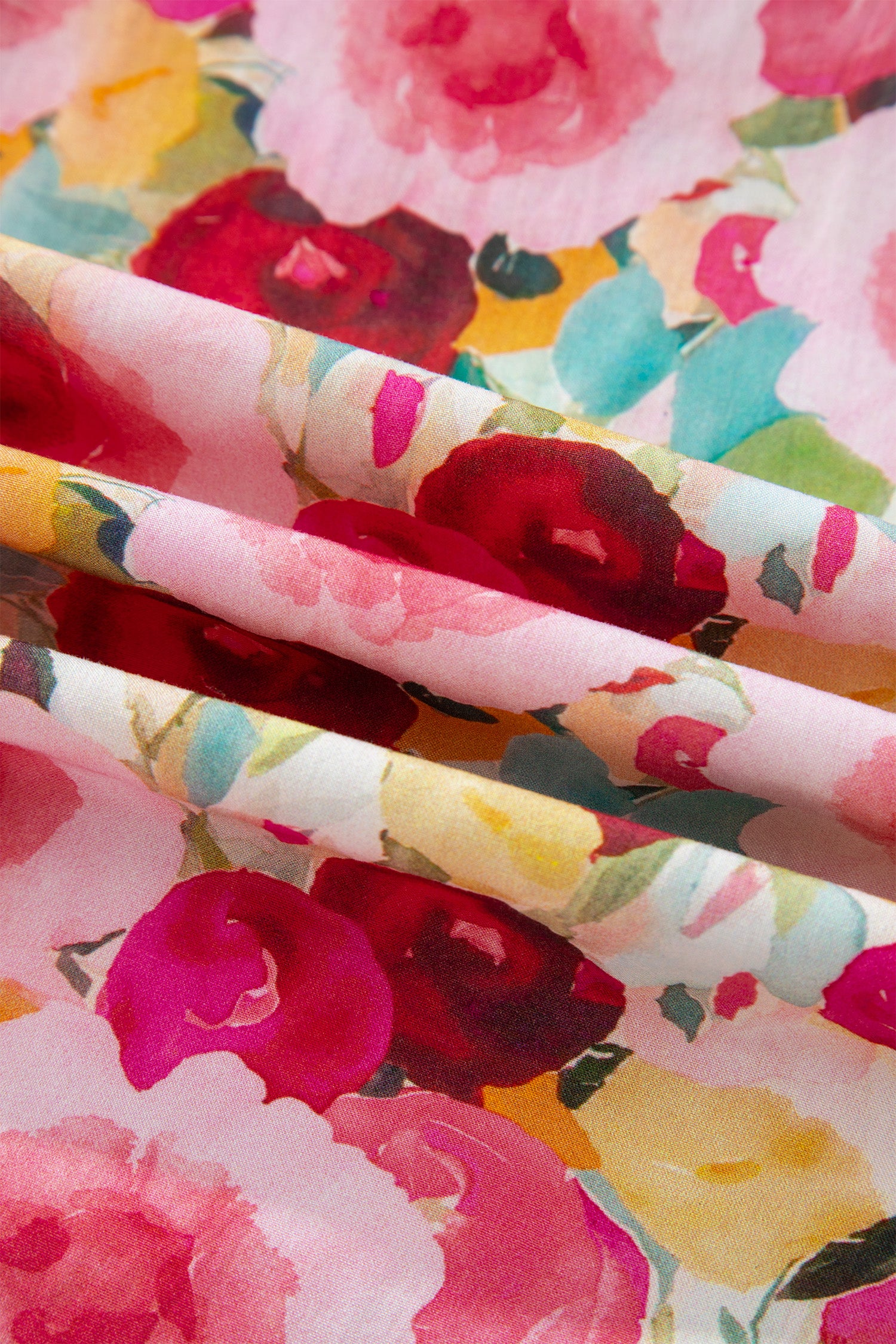 Floral Frilled V-Neck Short Puff Sleeve Blouse