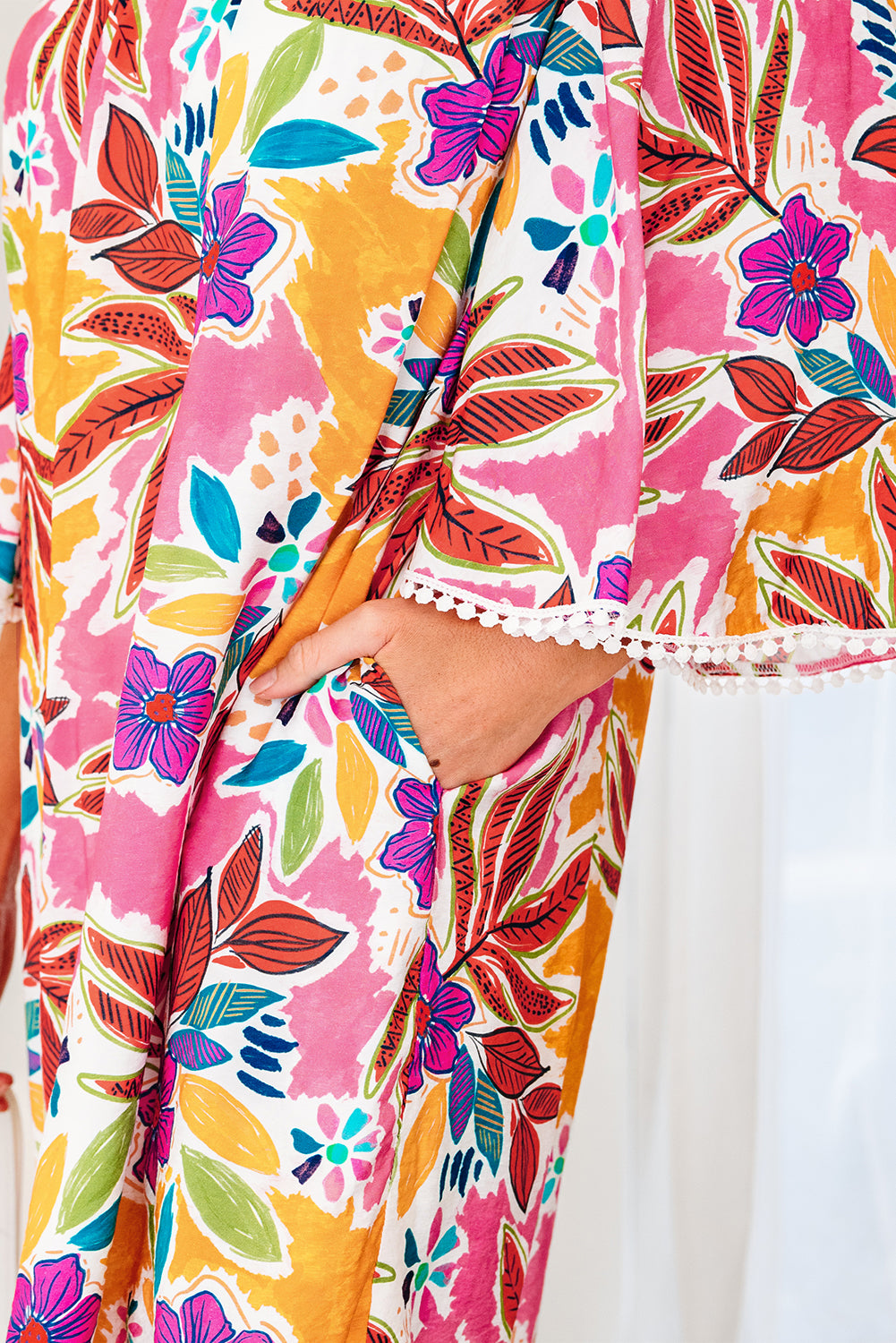 - Flowing bell sleeves create a graceful silhouette and offer a whimsical, boho vibe.