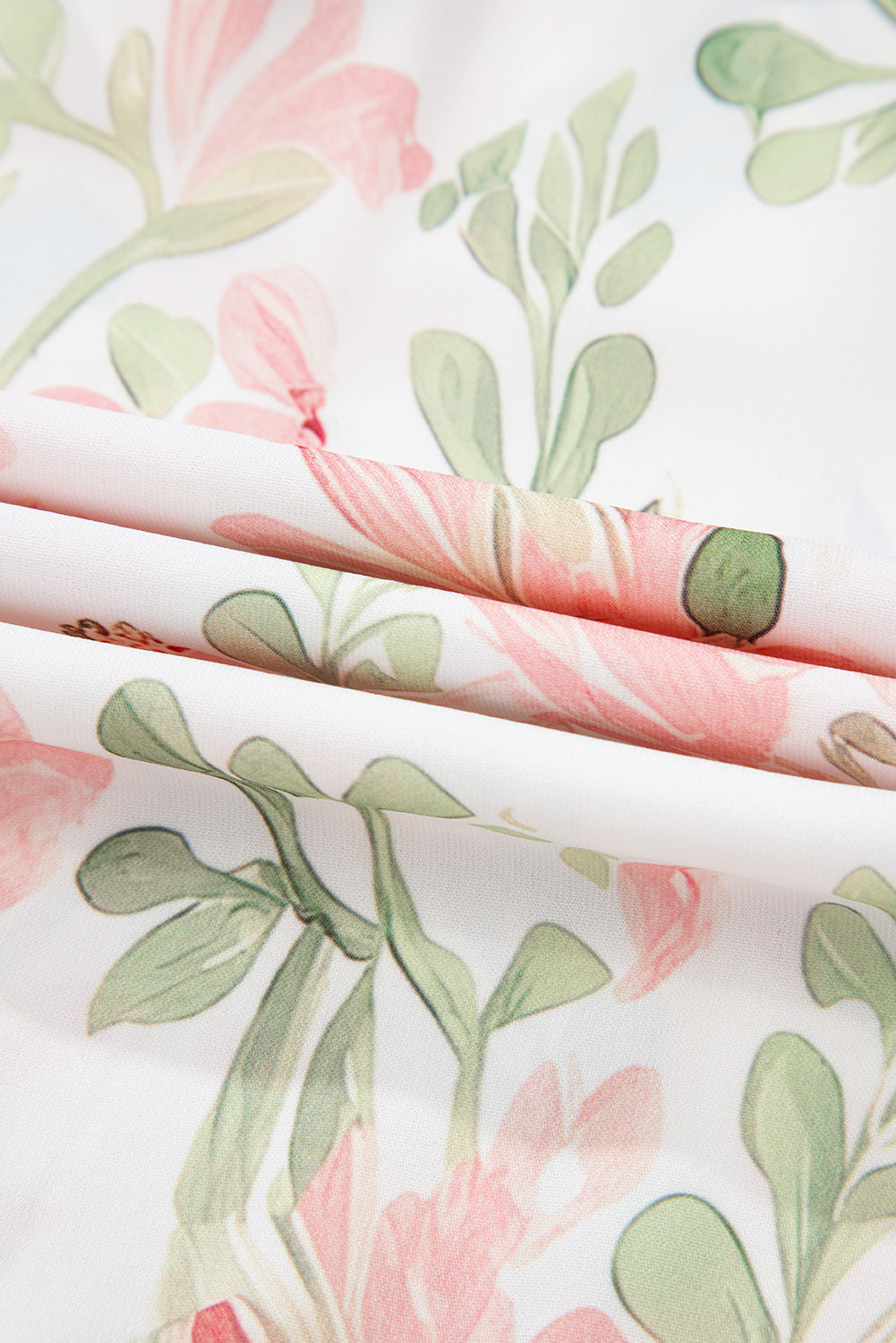 Floral Stripe Tiered Ruffle Sleeve V-Neck Blouse