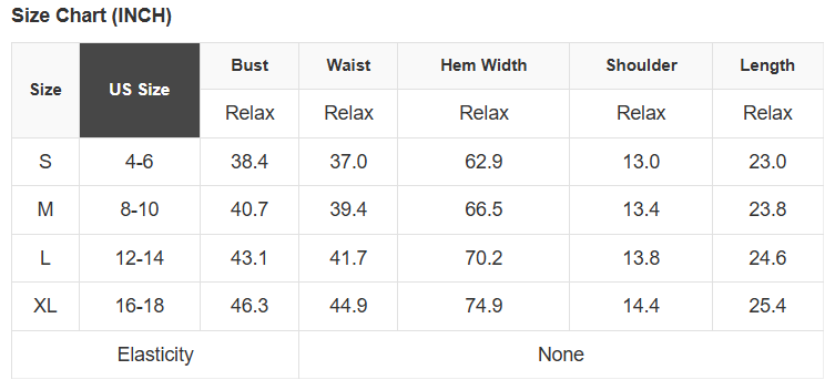 See size chart for approximate measurements.