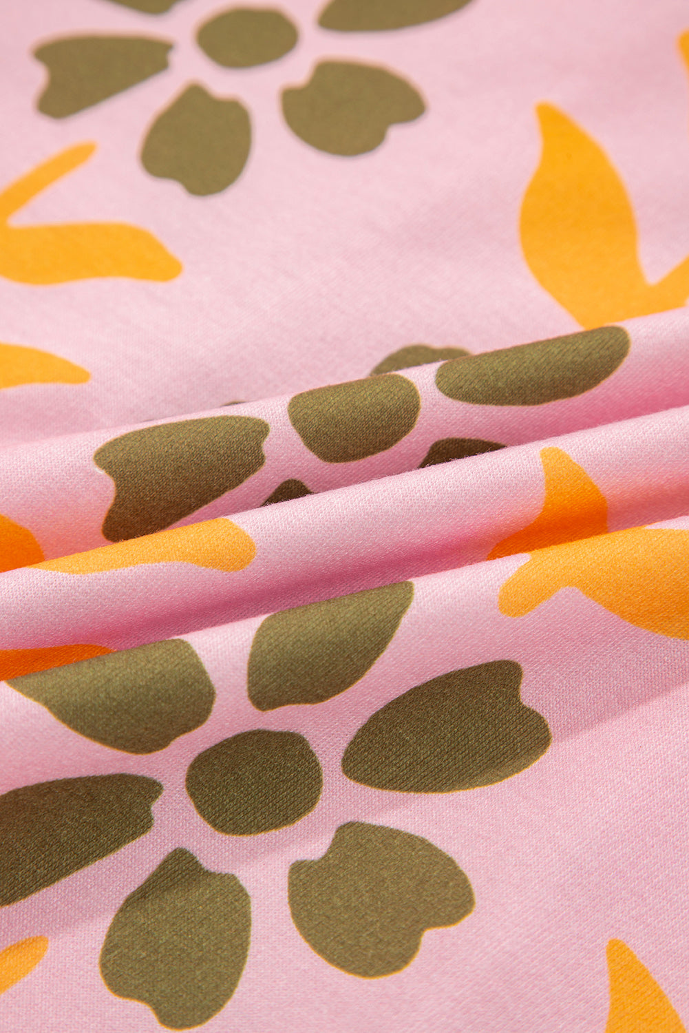 Floral Stripe Patchwork Long Sleeve Mini Dress