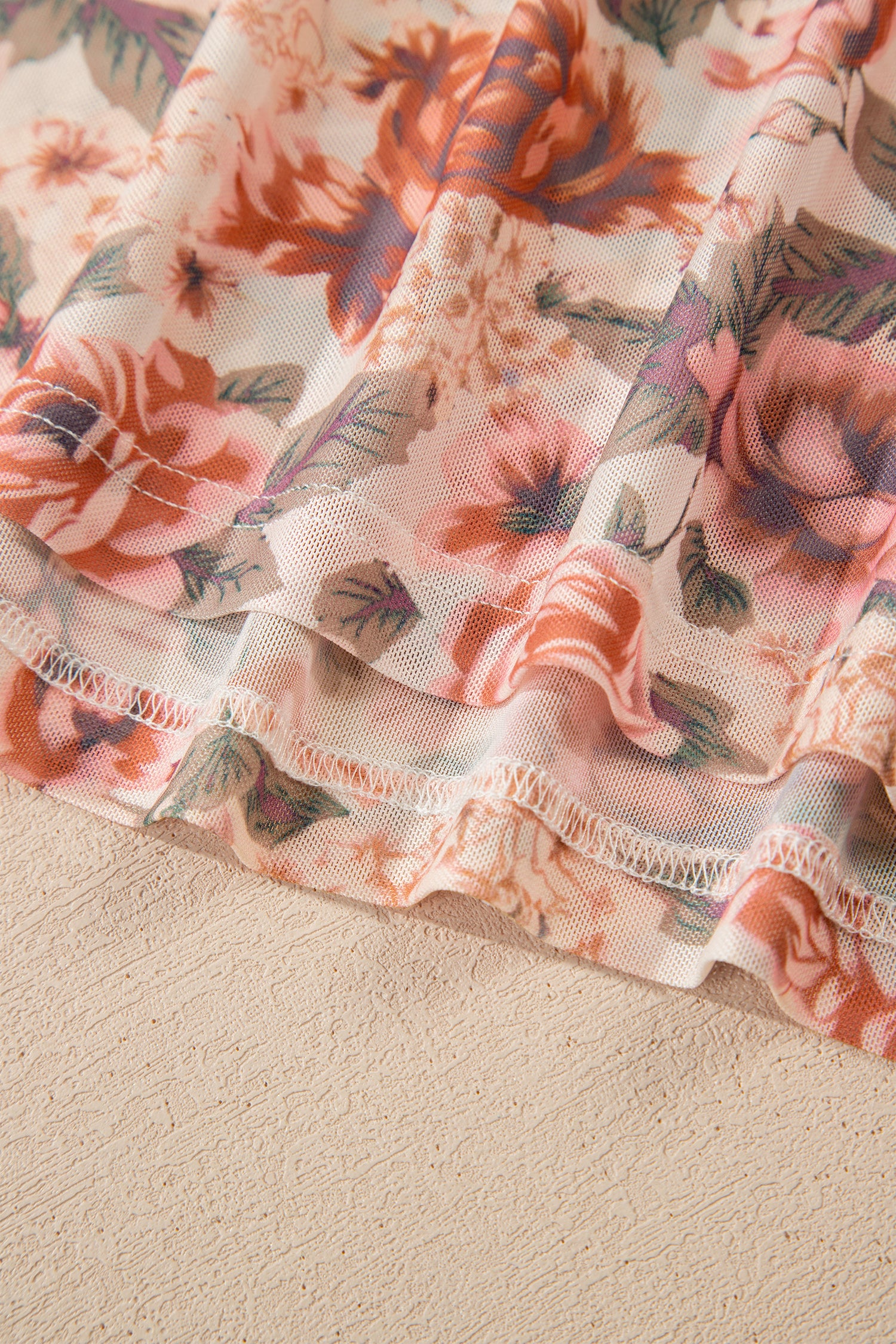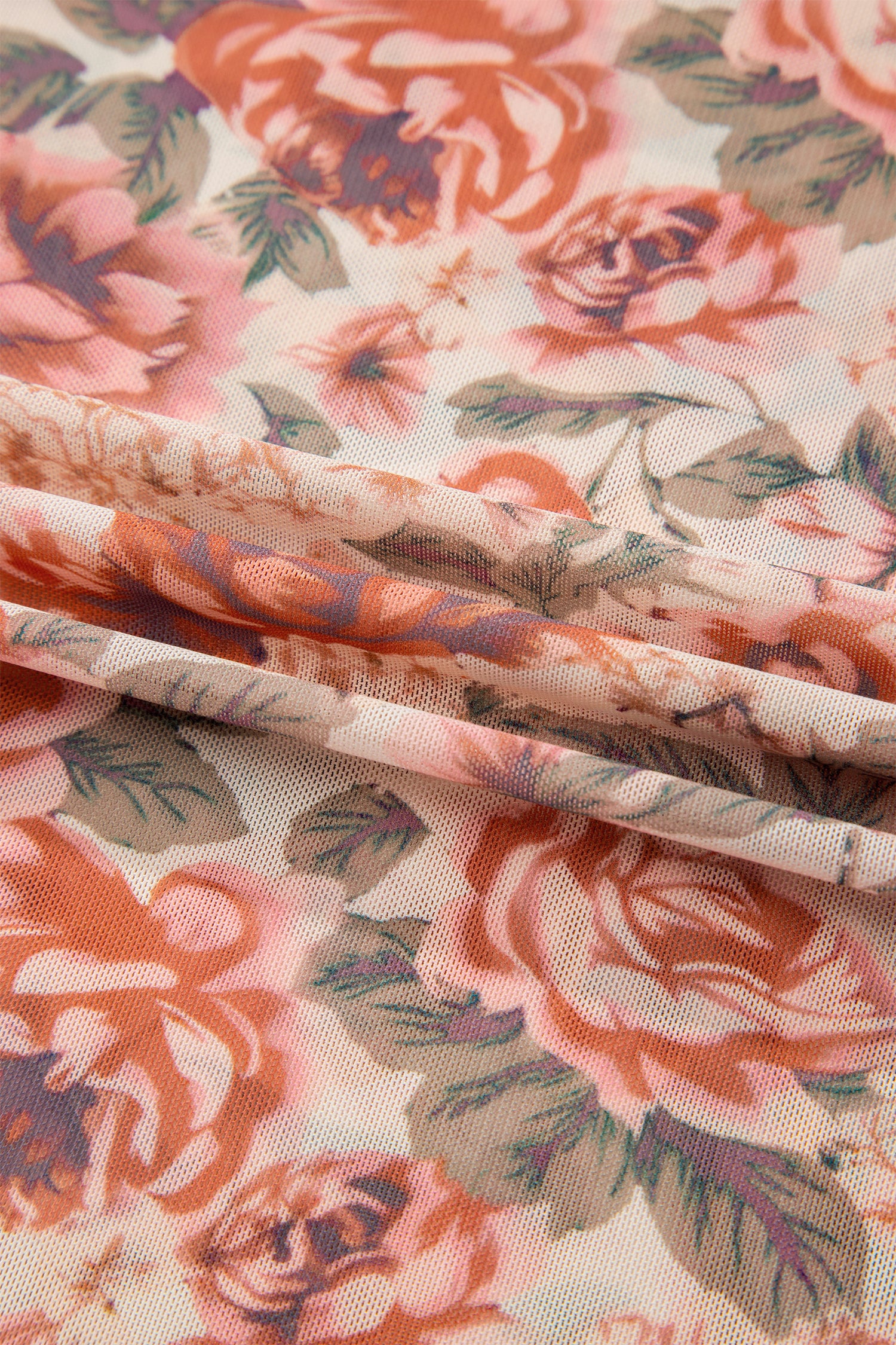 Plus Size Floral Mesh Mock Neck Top