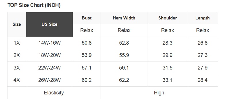 Plus Size Info: See size chart for approximate measurements