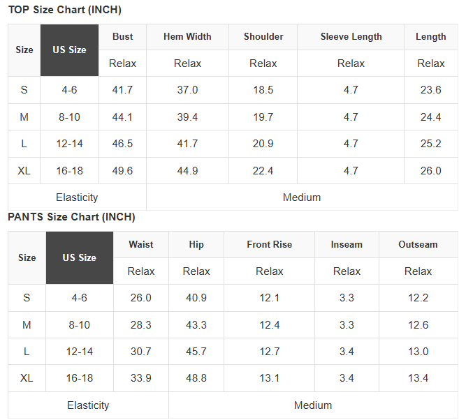 See size chart for approximate measurement