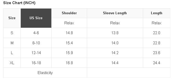 See size chart for approximate measurements