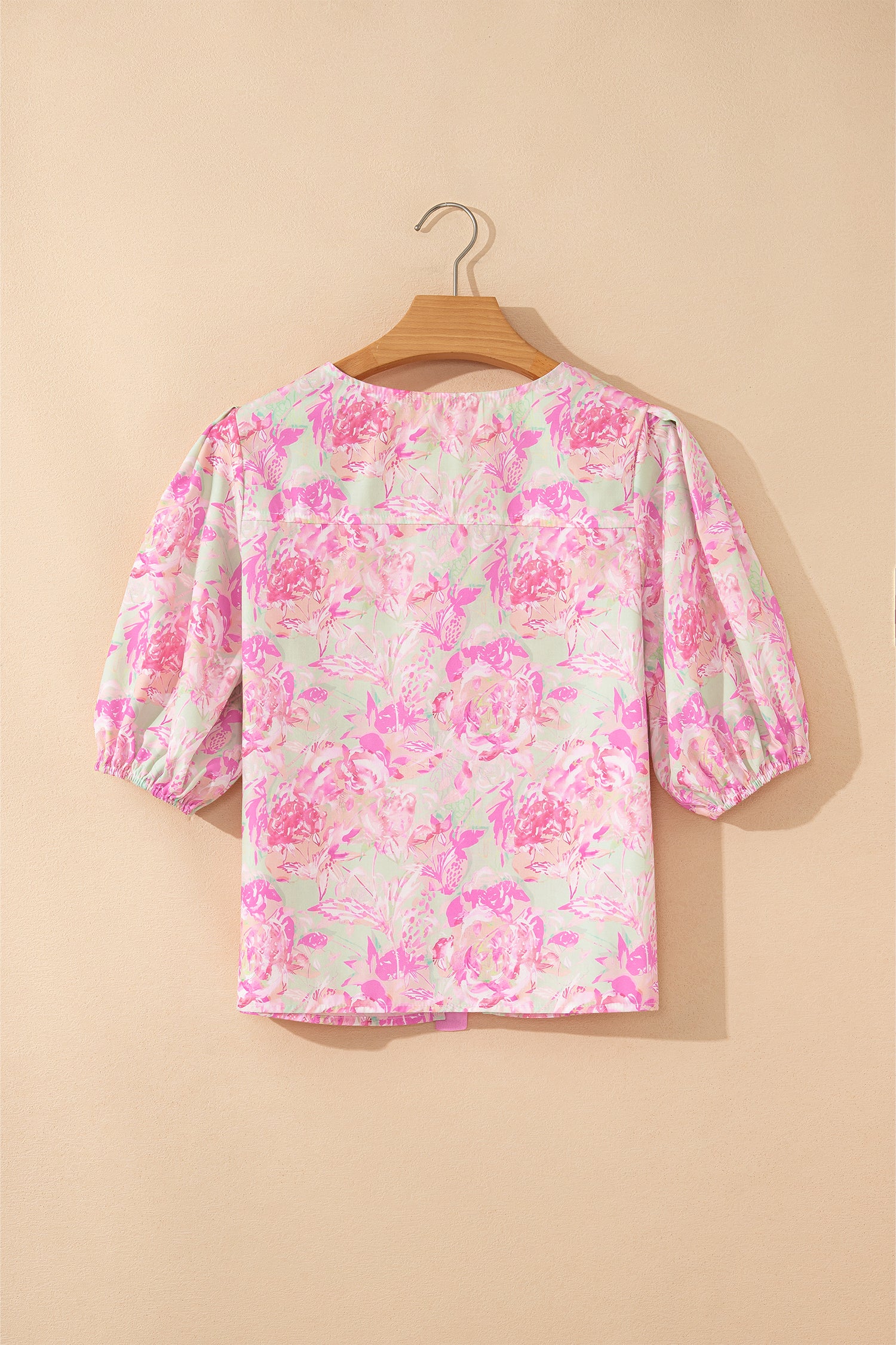 Floral Ribbon Tie Front Puff Sleeve Blouse
