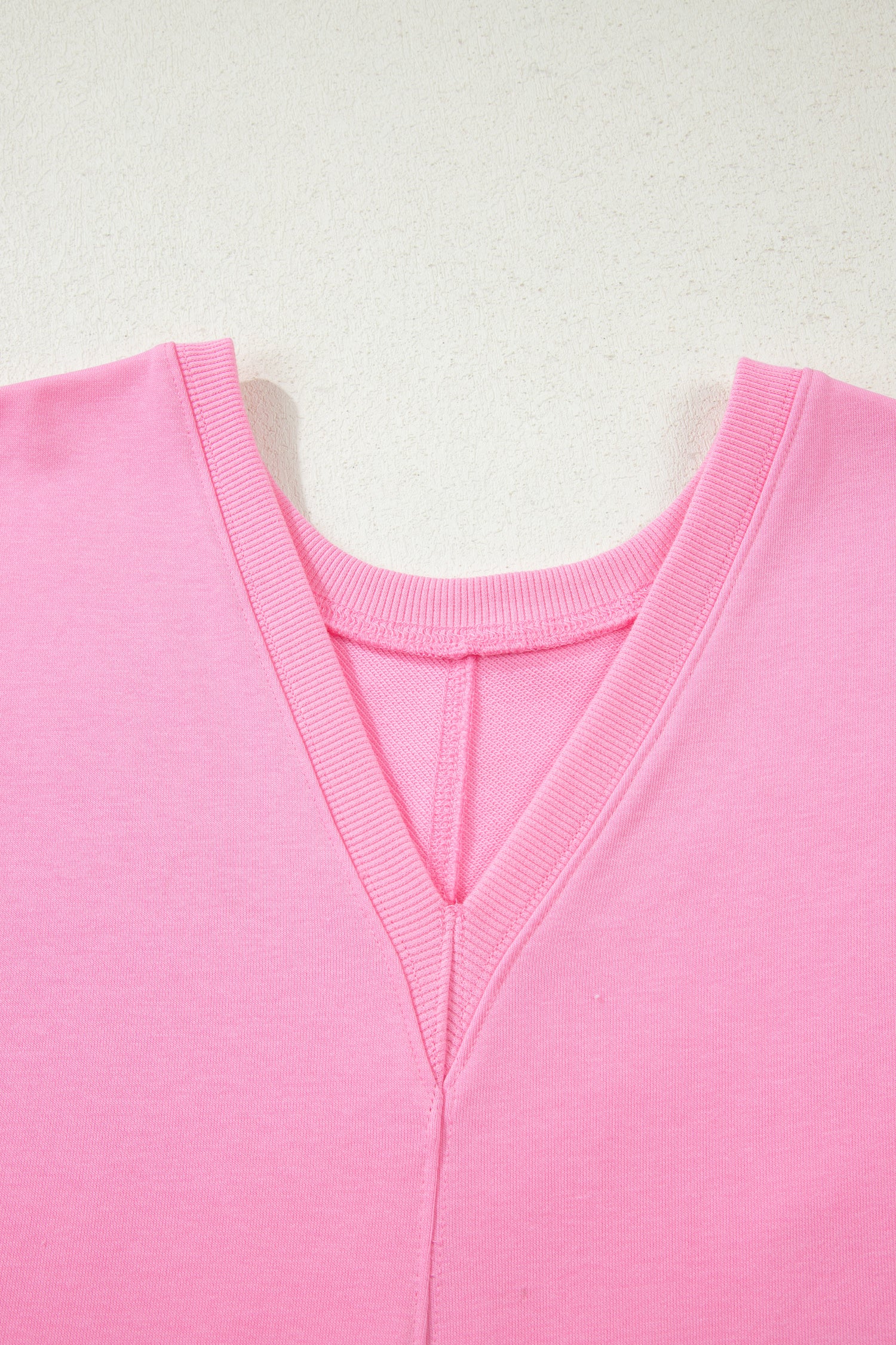 Solid Raw Edge Short Sleeve Pocketed Romper