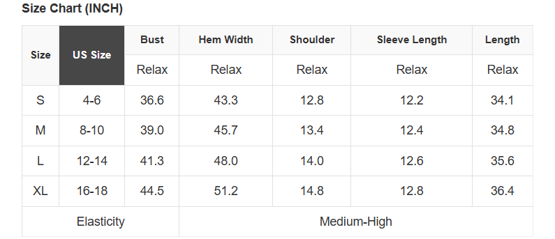 See size chart for approximate measurements.