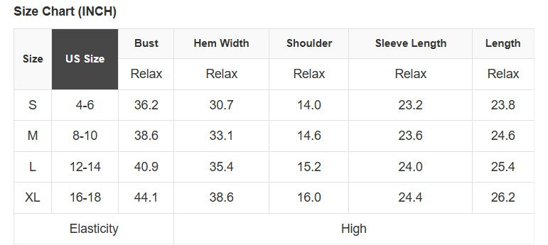 See size chart for approximate measurements.