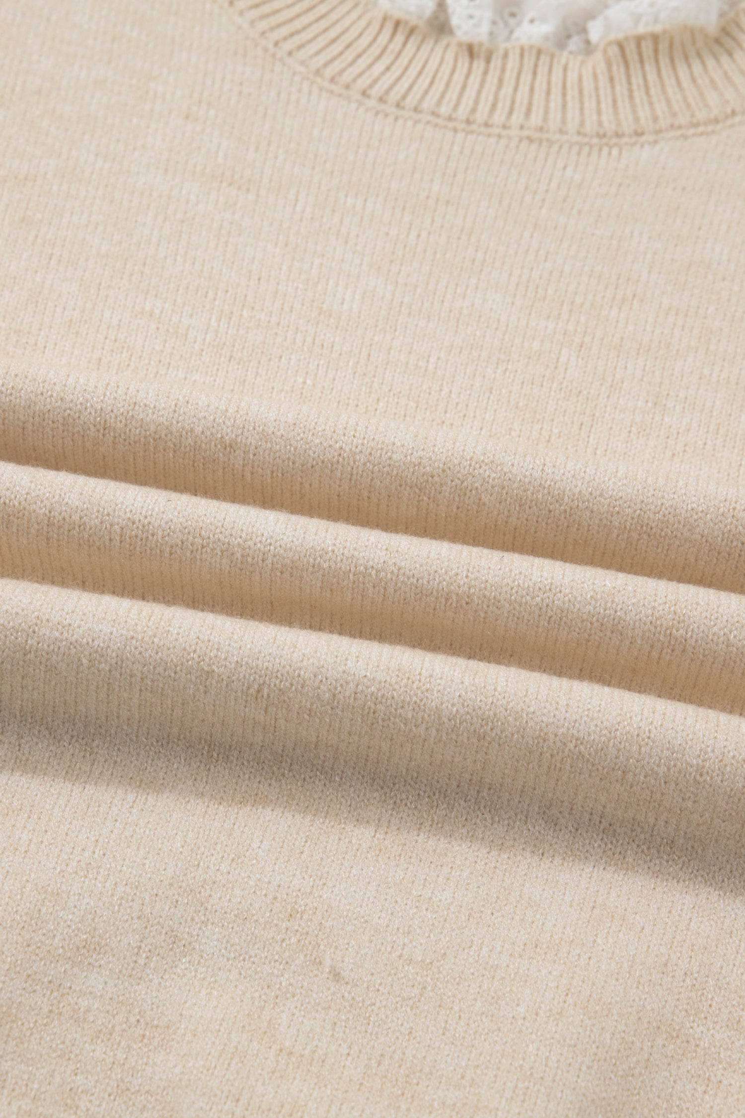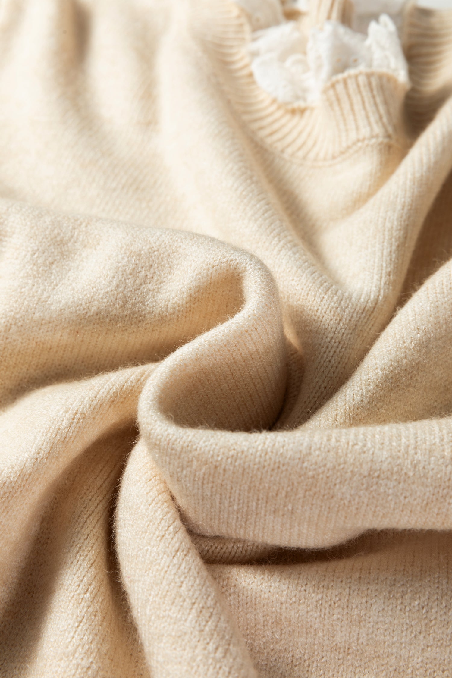Lace Trim Patchwork Buttoned Cuff Sweater