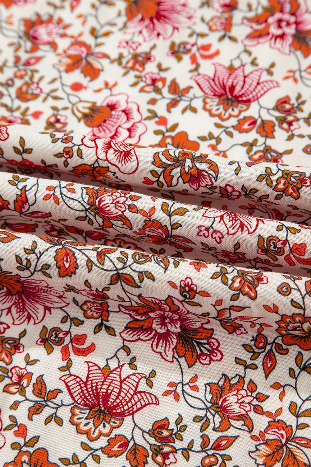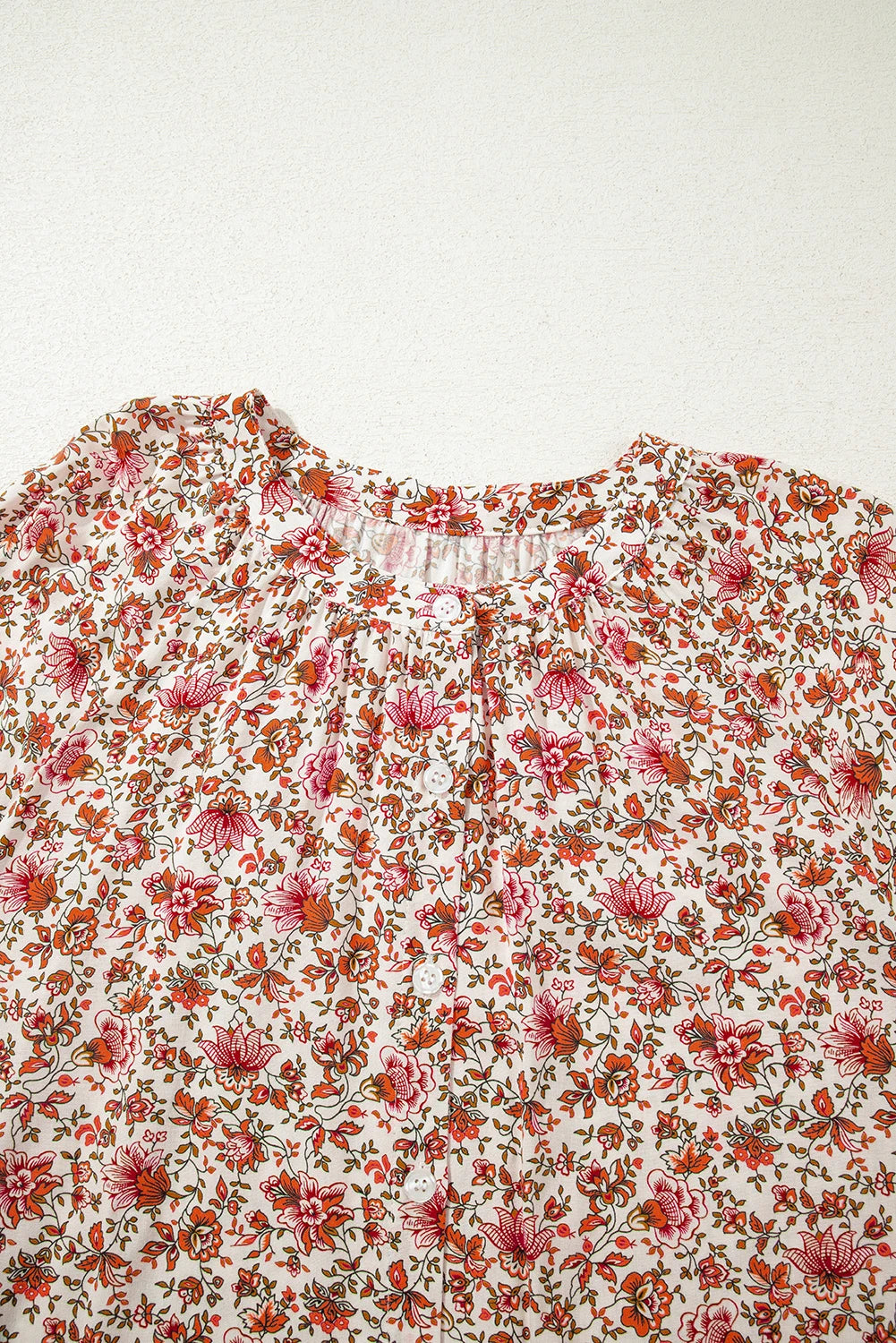 Floral Pleated Notched Neck Puff Sleeve Blouse