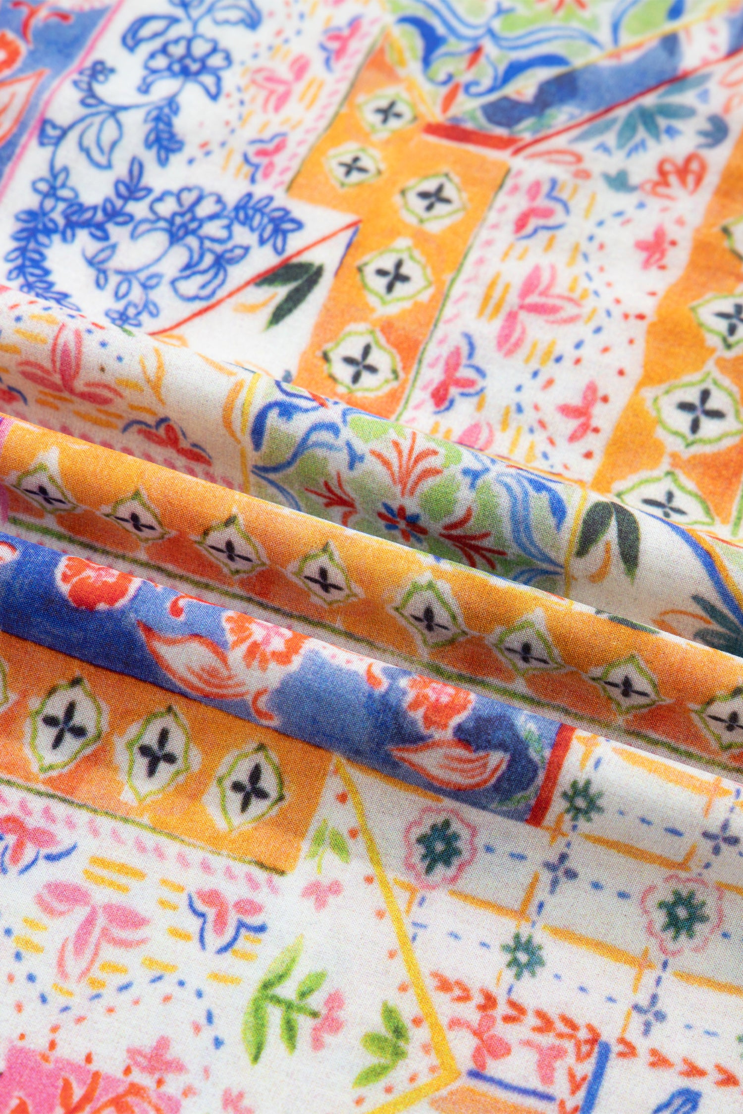 Boho Patchwork Tied V-Neck Short Sleeve Blouse