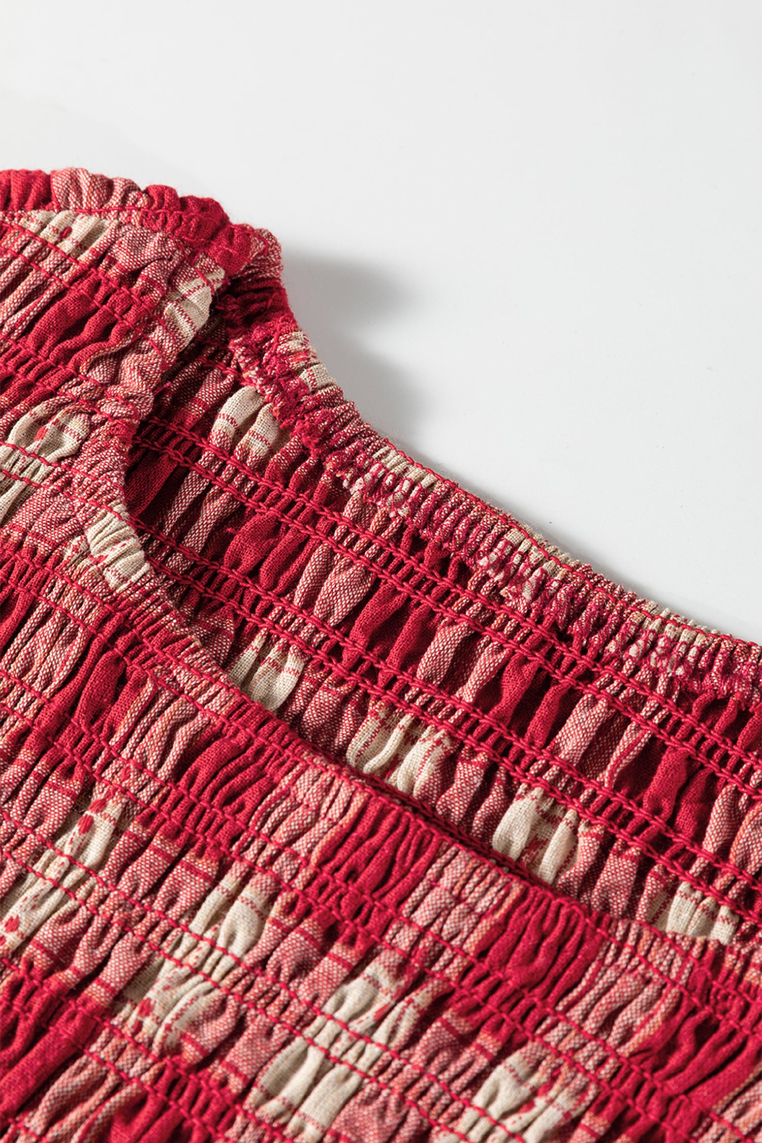Plaid Smocked Puff Sleeve Mini Dress