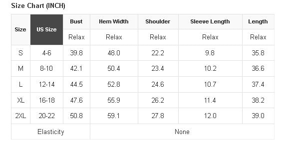 See size chart for approximate measurements