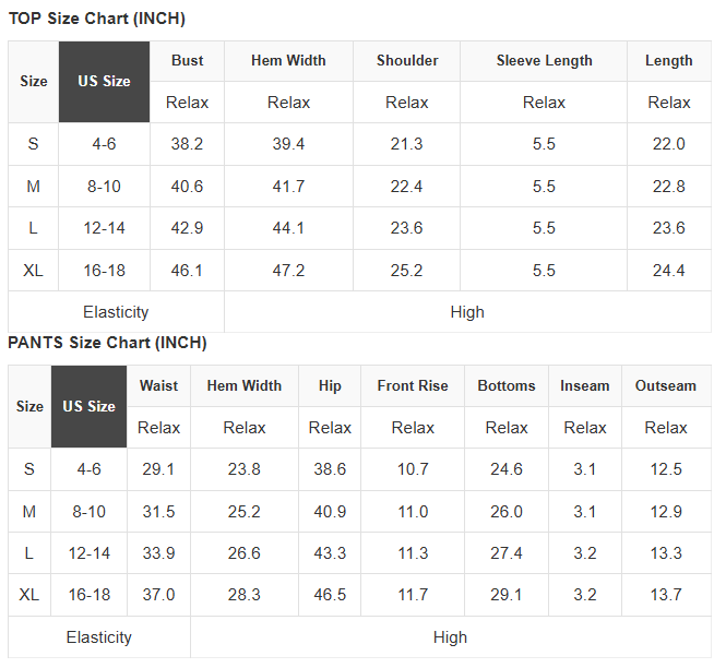 See size chart for approximate measurement