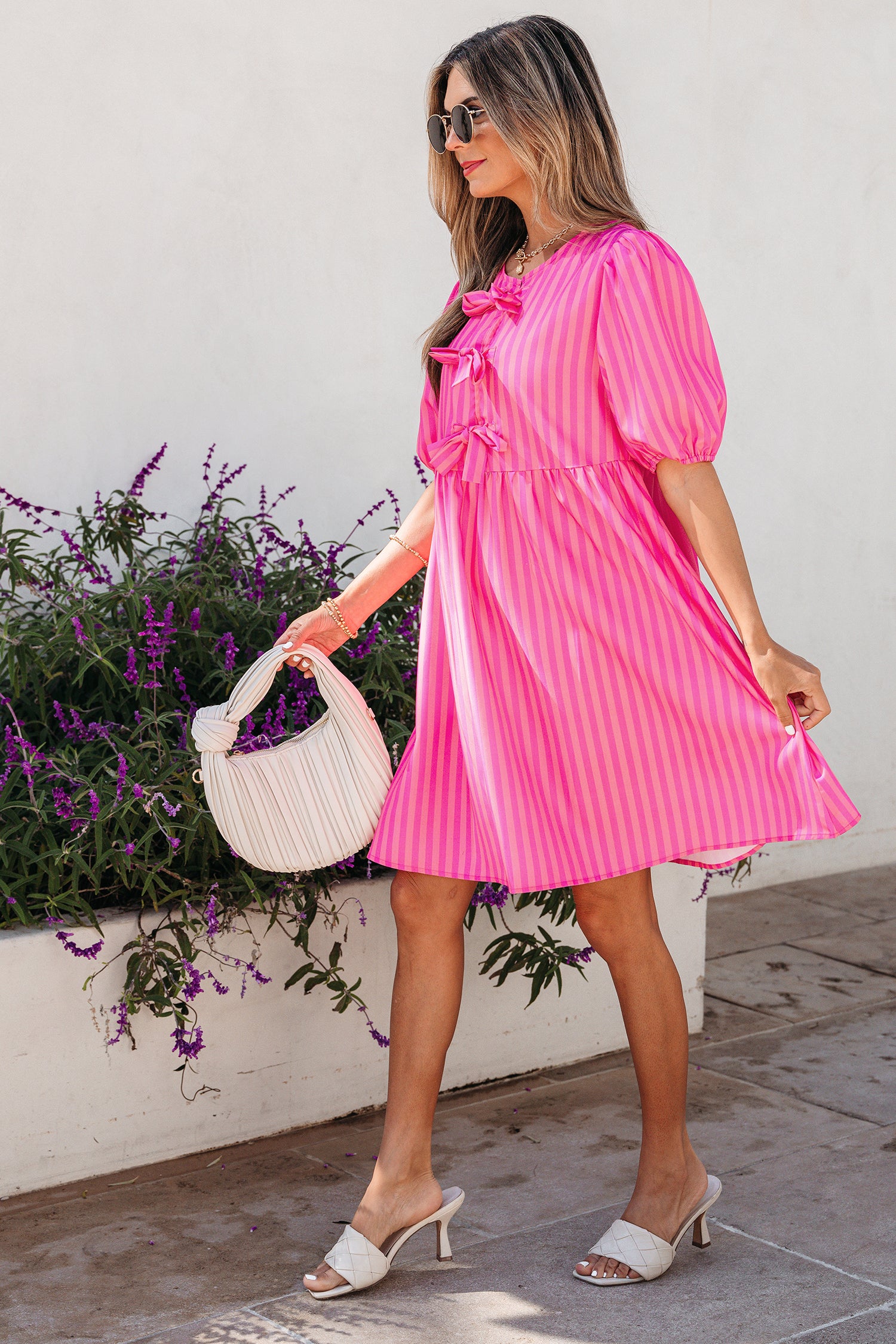 Elevate your everyday style with this charming mini dress, a versatile piece that transitions seamlessly from brunch to date night. The playful front bow detail adds instant personality, while the round neckline and short puff sleeves create a sweet, feminine silhouette. Perfect for anyone looking to make a statement without trying too hard, this dress brings effortless charm to any occasion. 100% Polyester