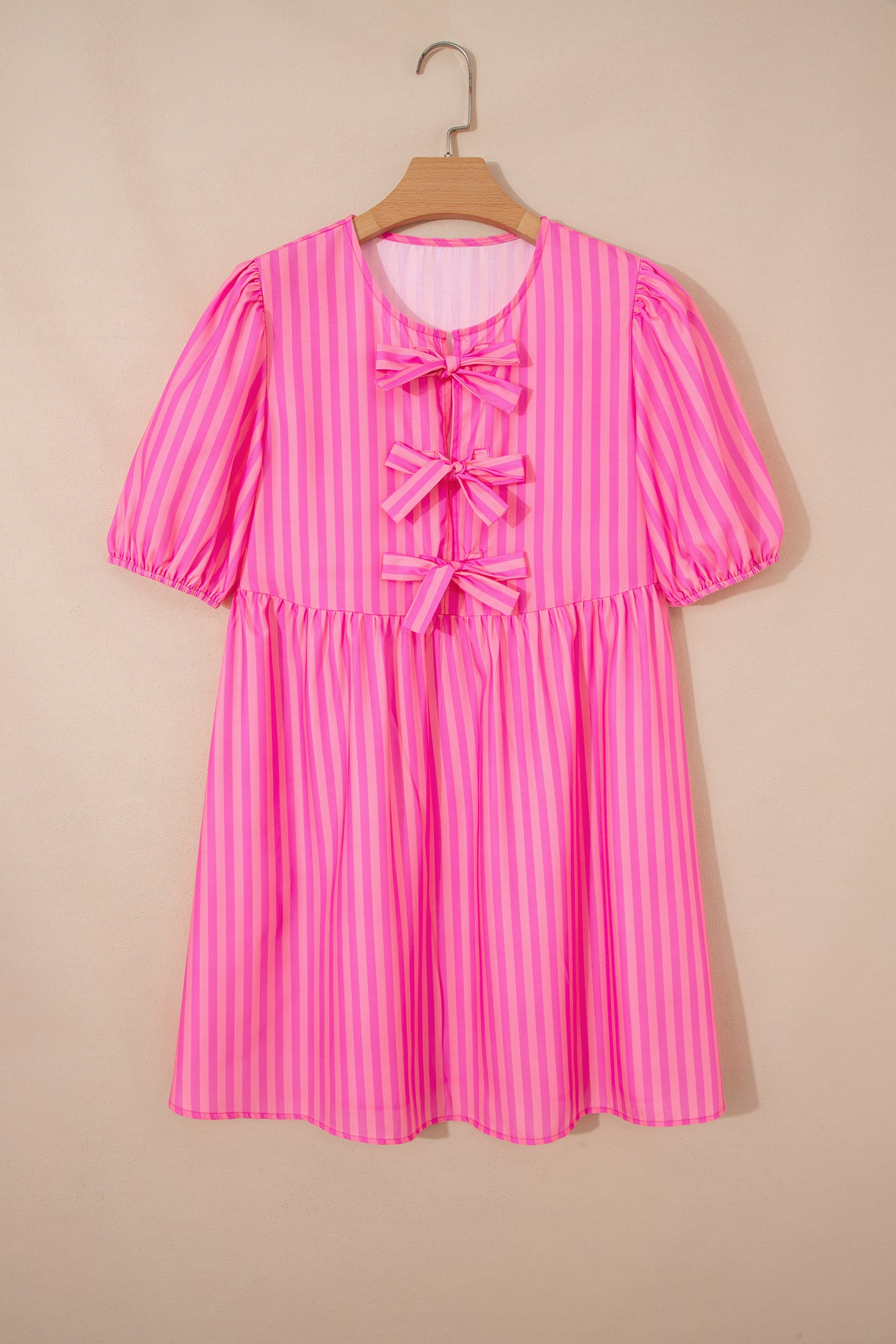 Stripe Bow Tie Front Short Puff Sleeve Dress